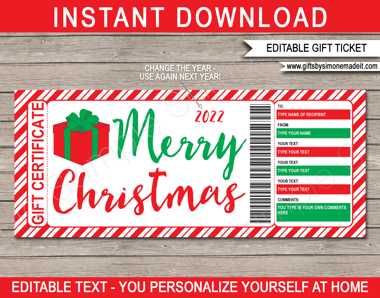 Christmas Gift Certificate Template Editable Printable Gift Vouchers