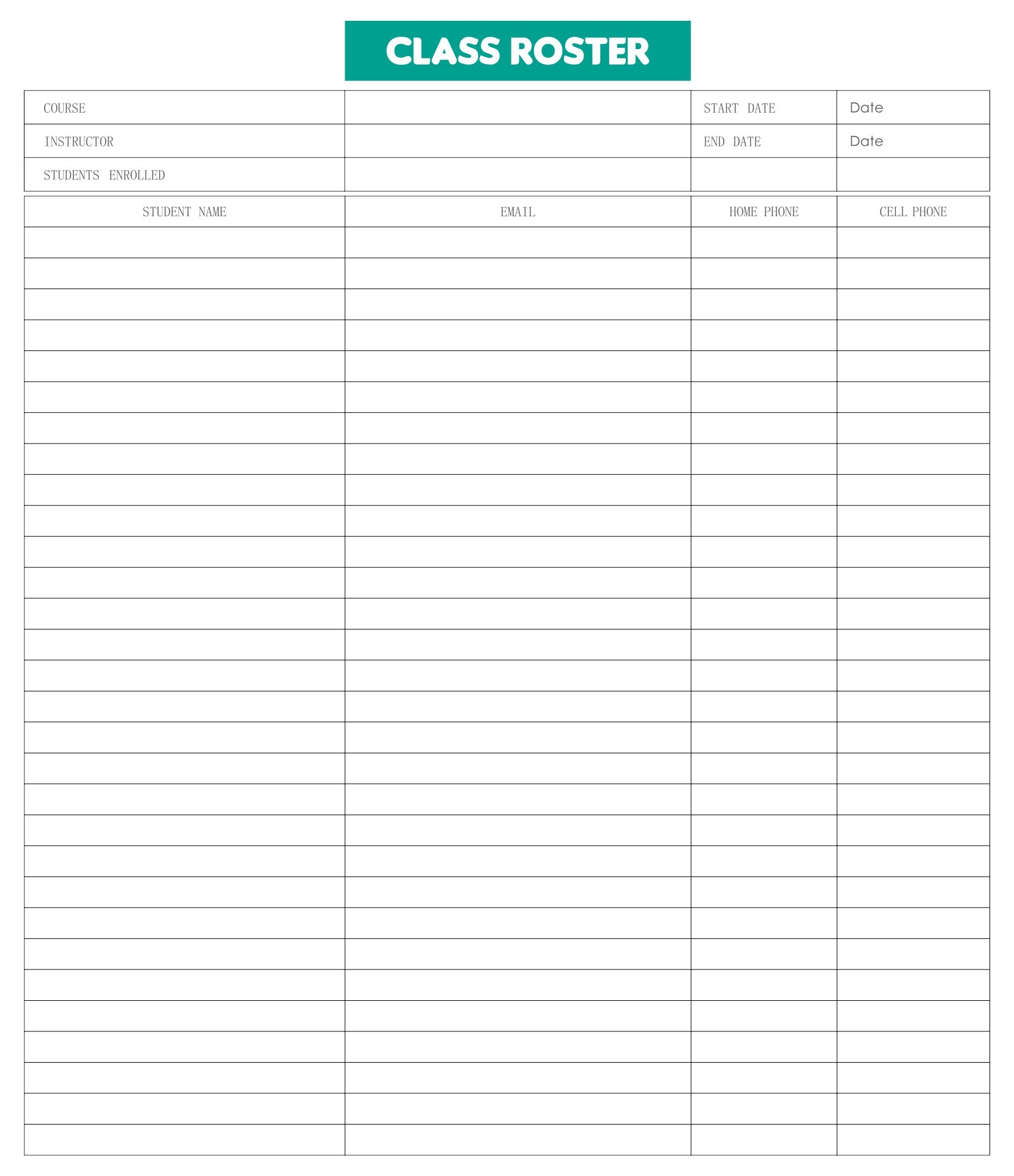 Free Printable Class List Template