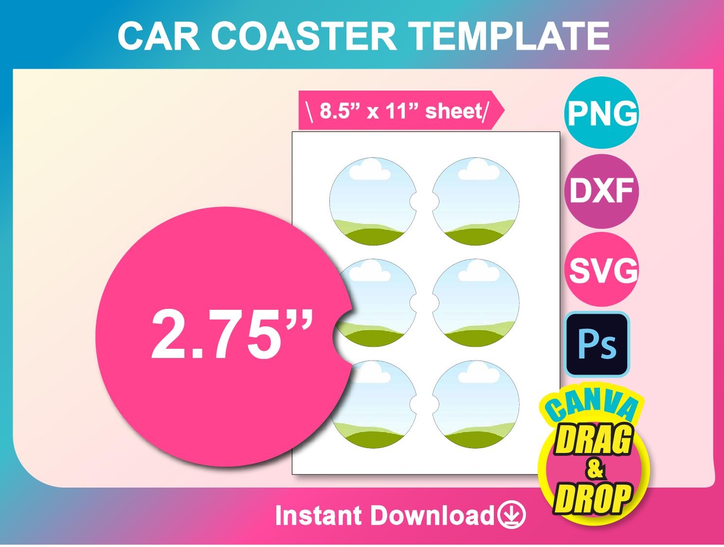 Car Coaster Template SVG Circle With Notch Cut File DXF Eps