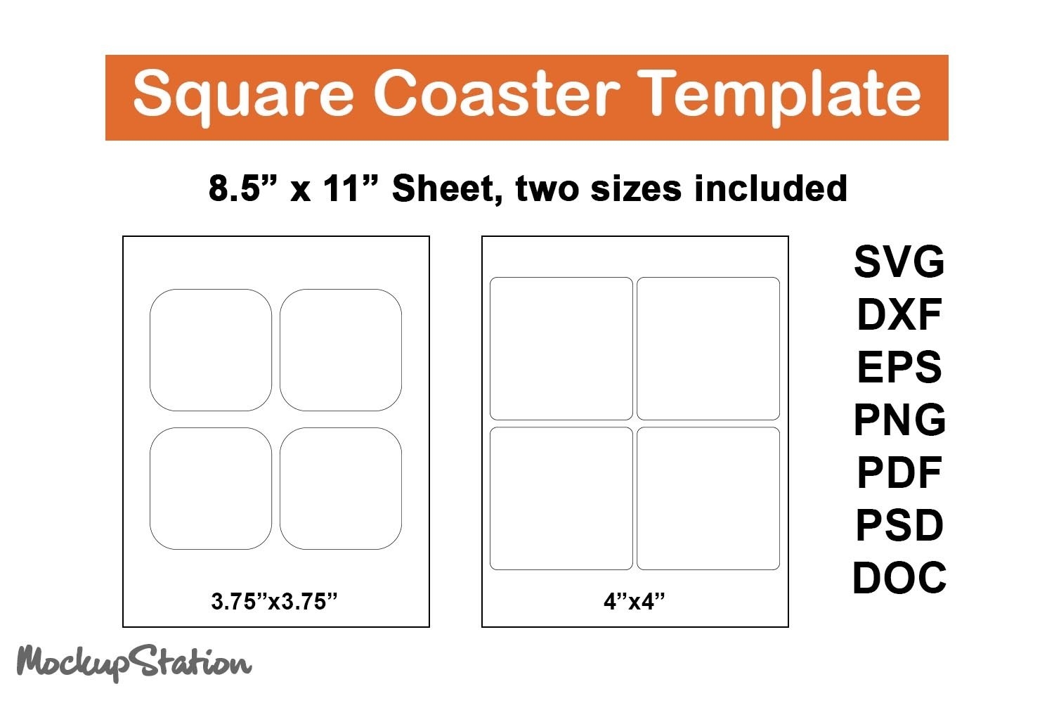 Square Cup Coaster Template SVG Cut File Printable
