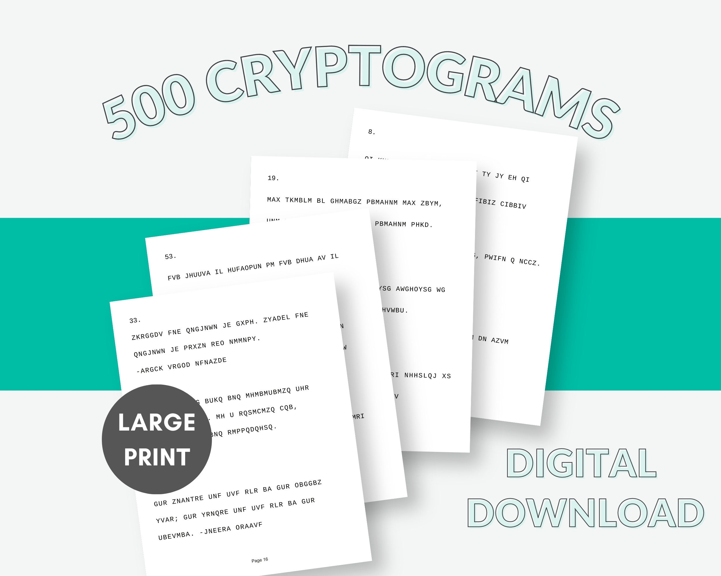 500 Printable Cryptogram Puzzle With Answers Cryptoquote Printable Large Print Inspirational And Motivational Quotes To Decipher Etsy