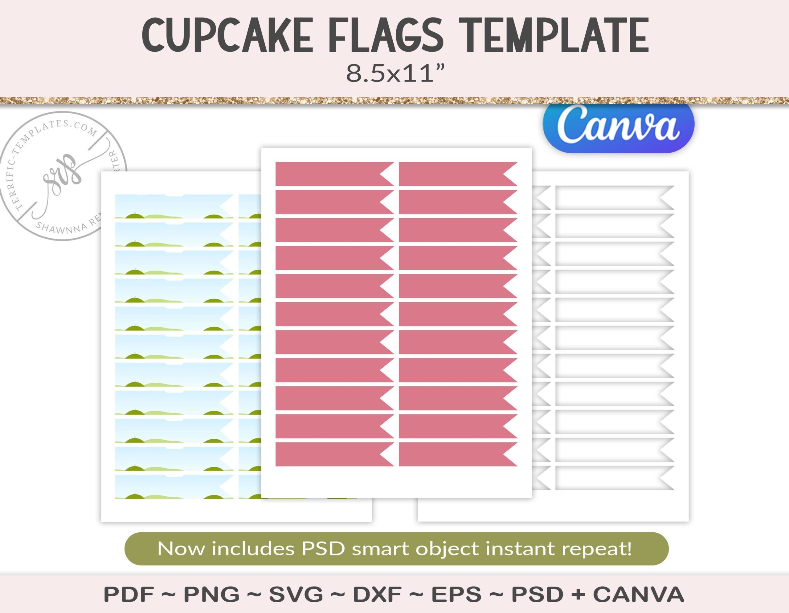 Cupcake Flag Template Party Printable Craft Template Mini Food Flag Cutting File Straw Flag Canva Template PSD PNG SVG AG85 Etsy Canada