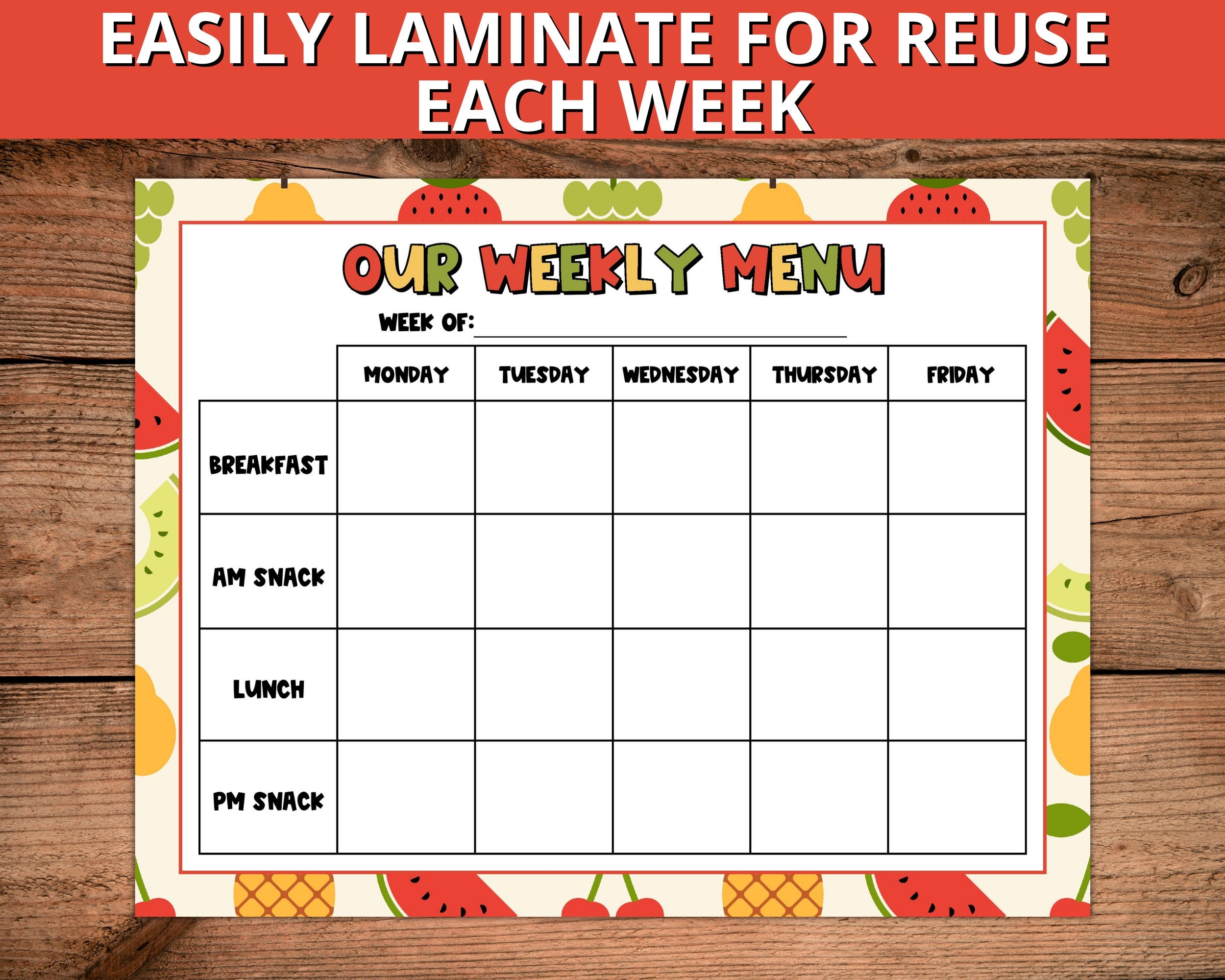 Editable Daycare Weekly Menu Editable Daycare Menu Fillable Daycare Weekly Meal Planner Printable Etsy