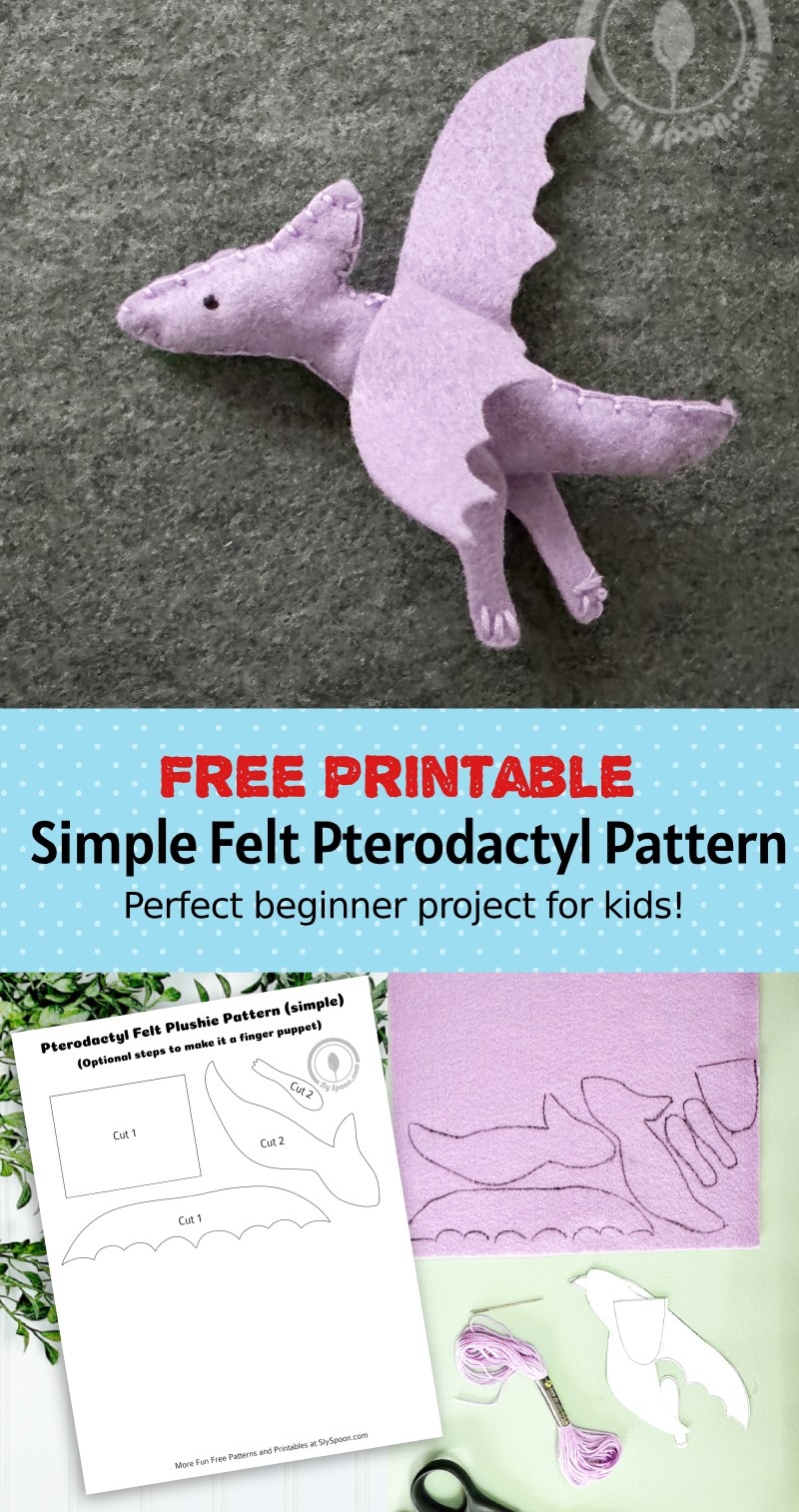Free Printable Simple Felt Pterodactyl Dinosaur Pattern Great For Beginners And Kids Optional Finger Puppet Steps Sly Spoon