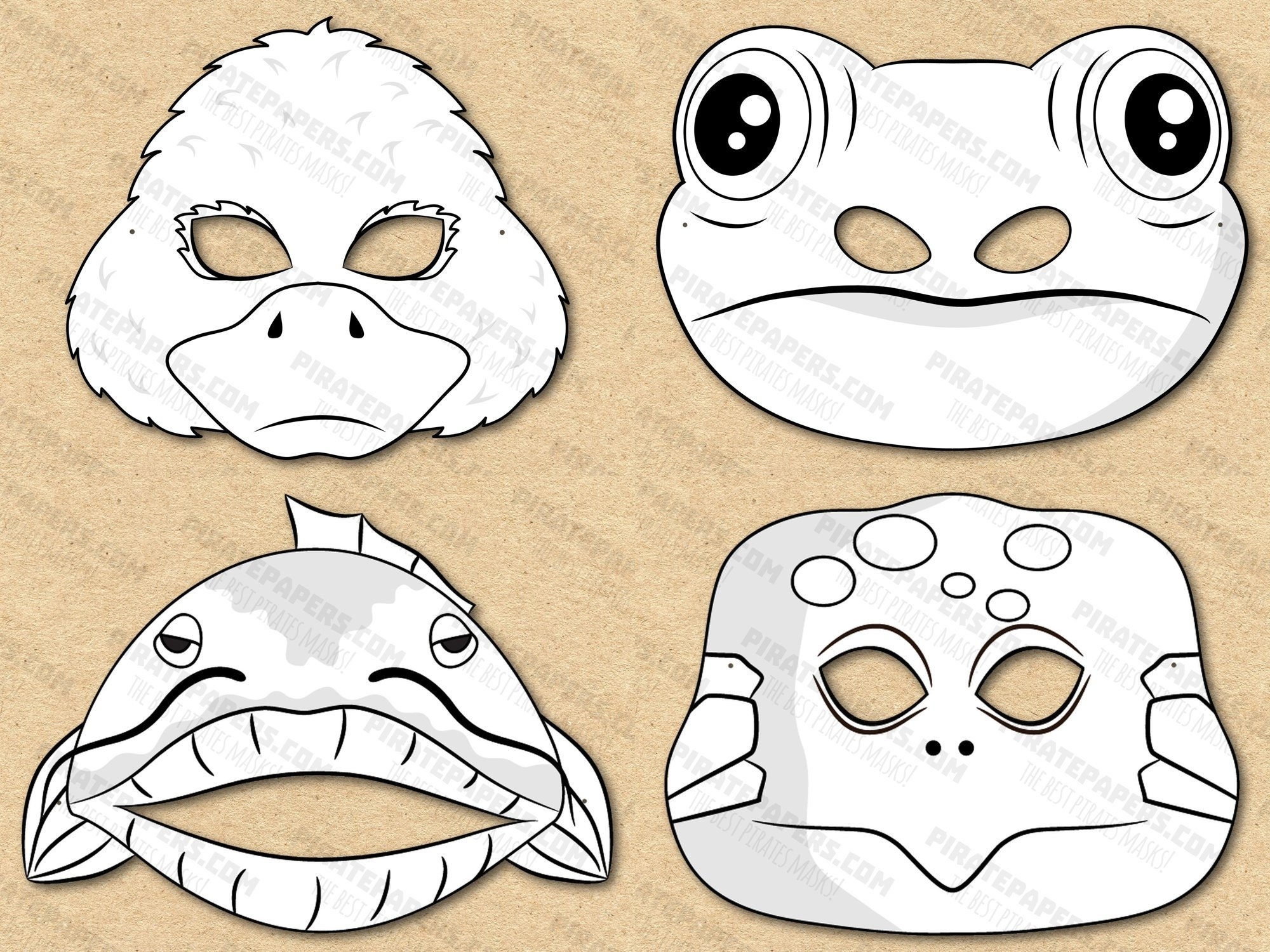 Pond Animals Masks Printable Coloring Catfish Frog Turtle Duck Paper DIY Kids Adults PDF Template Instant Download Halloween Birthdays Etsy