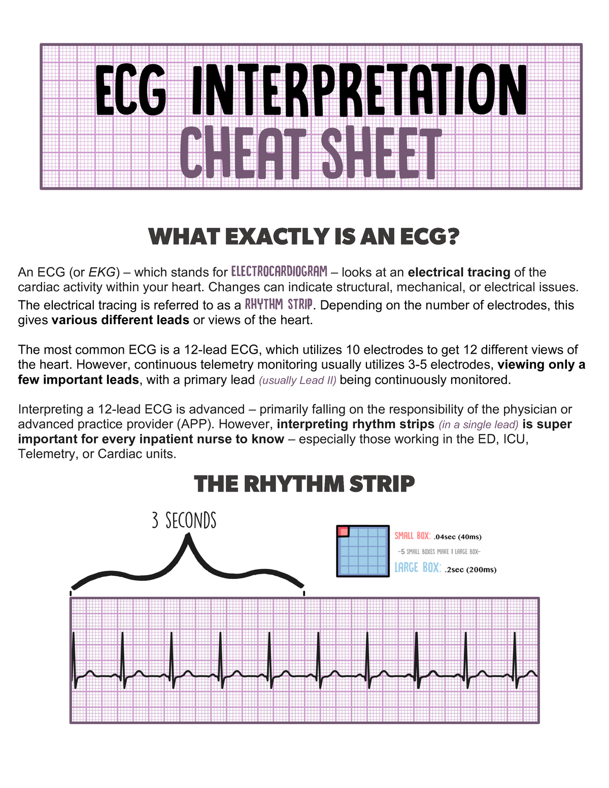 ECG Interpretation Cheat Sheet WHAT EXACTLY IS AN ECG An ECG Worksheets Library