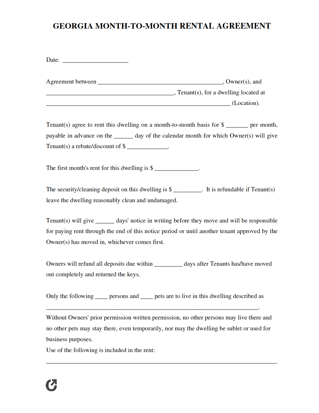 Free Georgia Rental Lease Agreement Templates PDF Word