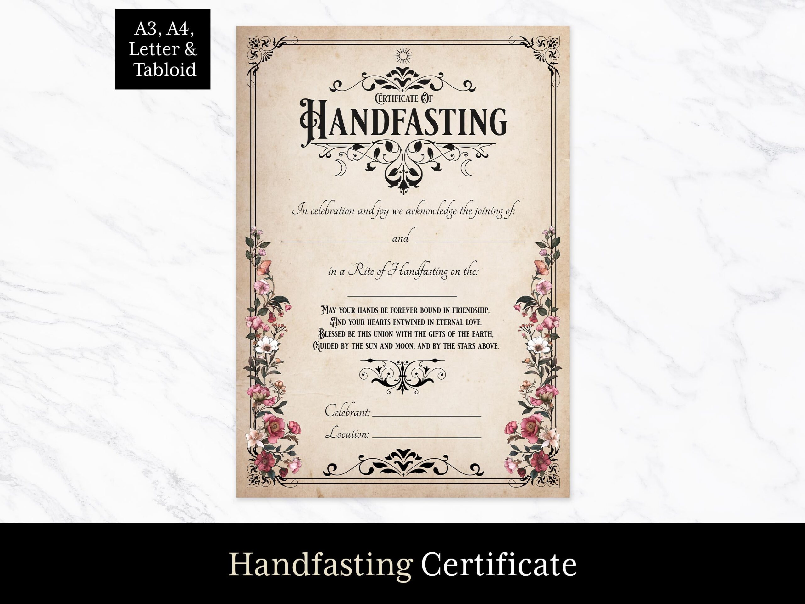Handfasting Certificate Pagan Wedding Certificate Printable Wiccan Handfasting Rite Template Witch Gift In A3 A4 US Letter U0026 Tabloid Sizes Etsy