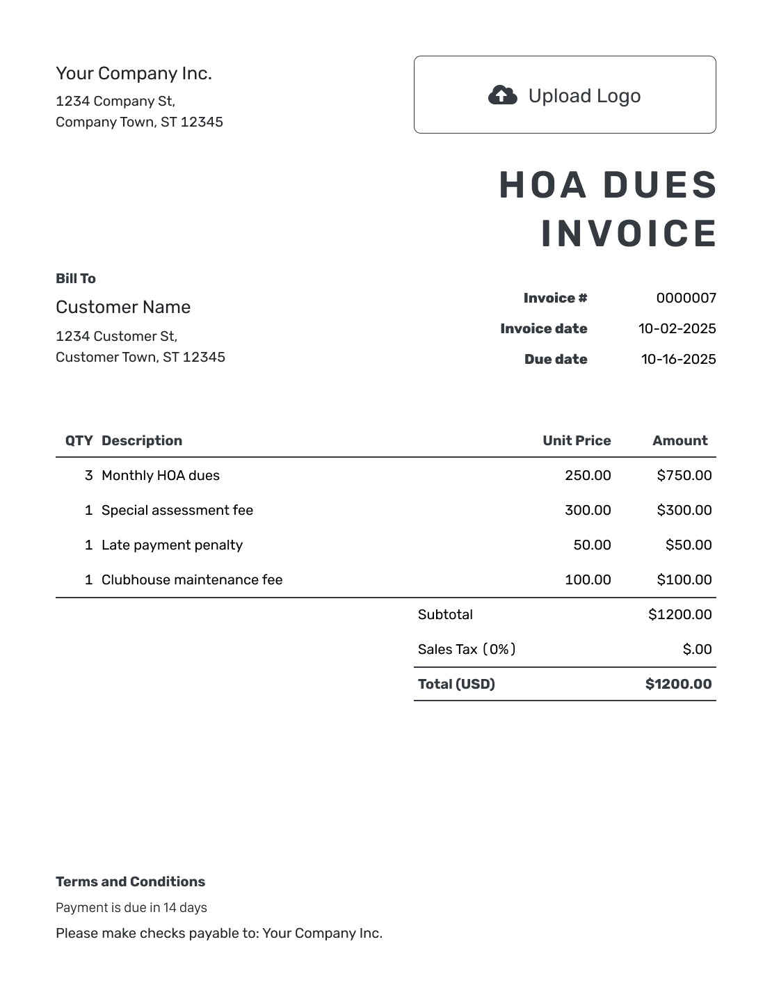 Free HOA Dues Invoice Template Docelf