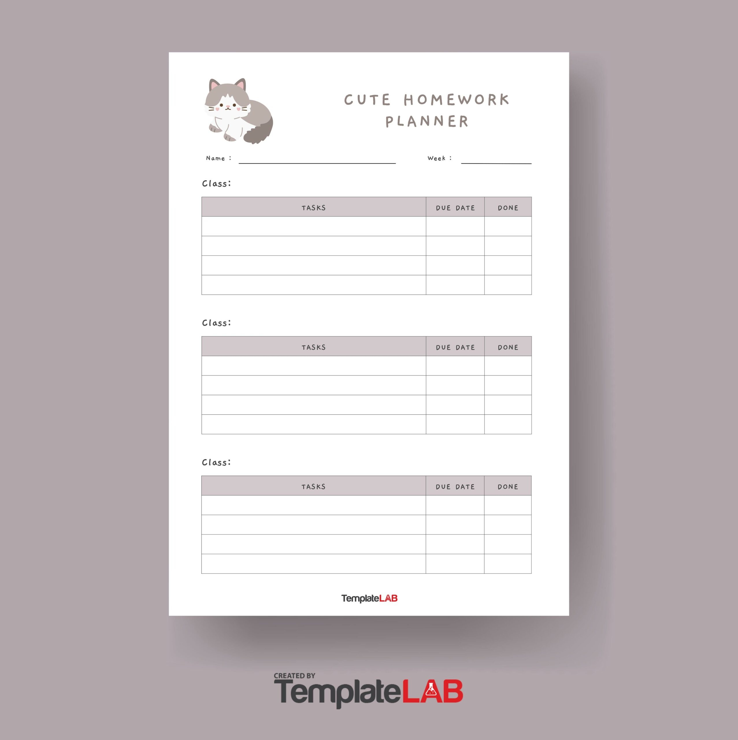 Free Printable Homework Planner Templates Excel PDF Word Cute