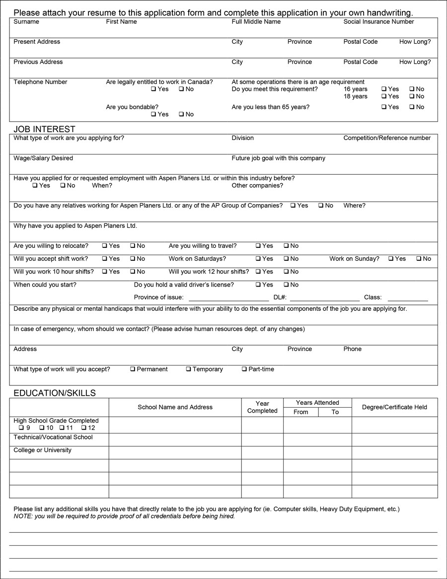 Free Printable Job Application Form Pdf