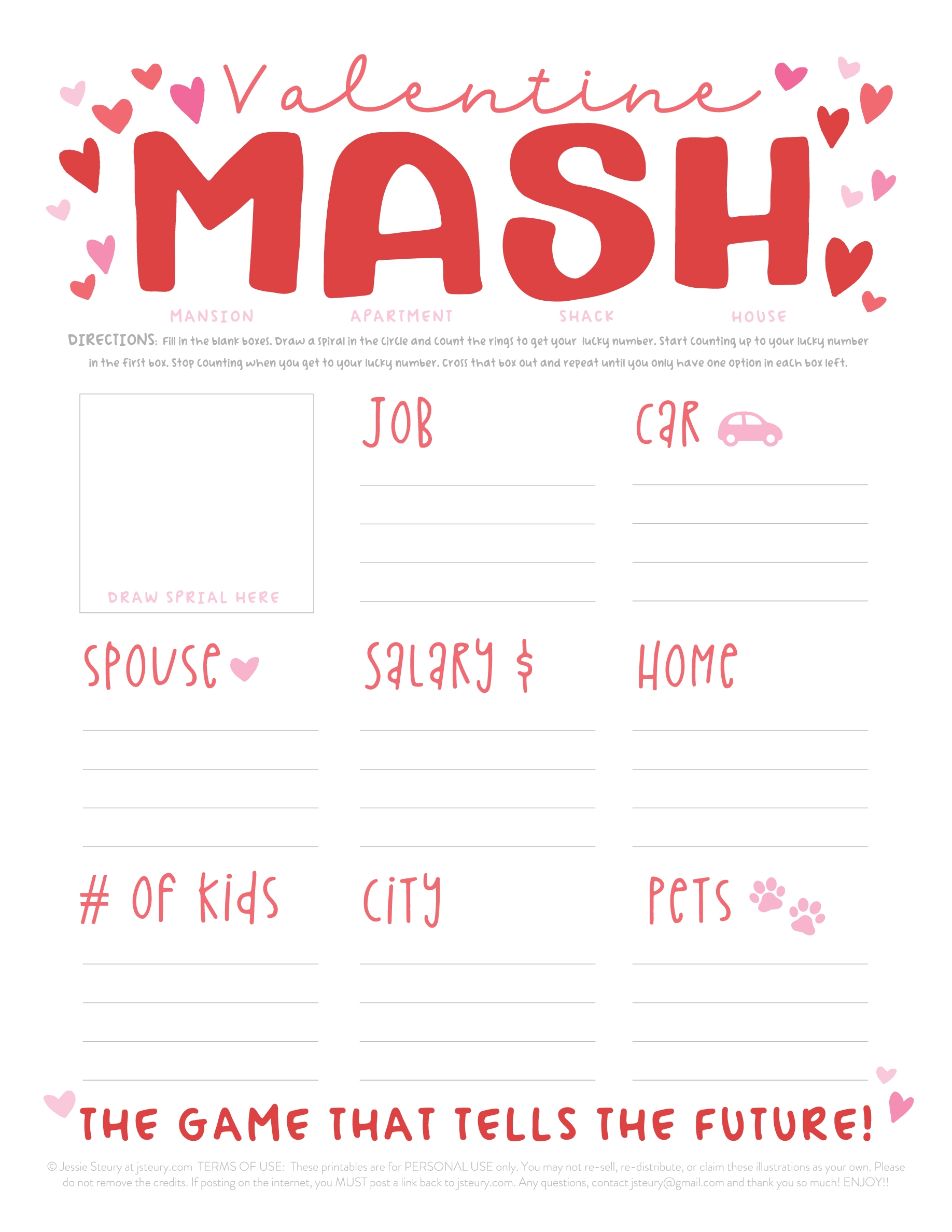 Free Valentine MASH Game U0026 Word Search Cards Jessie Steury