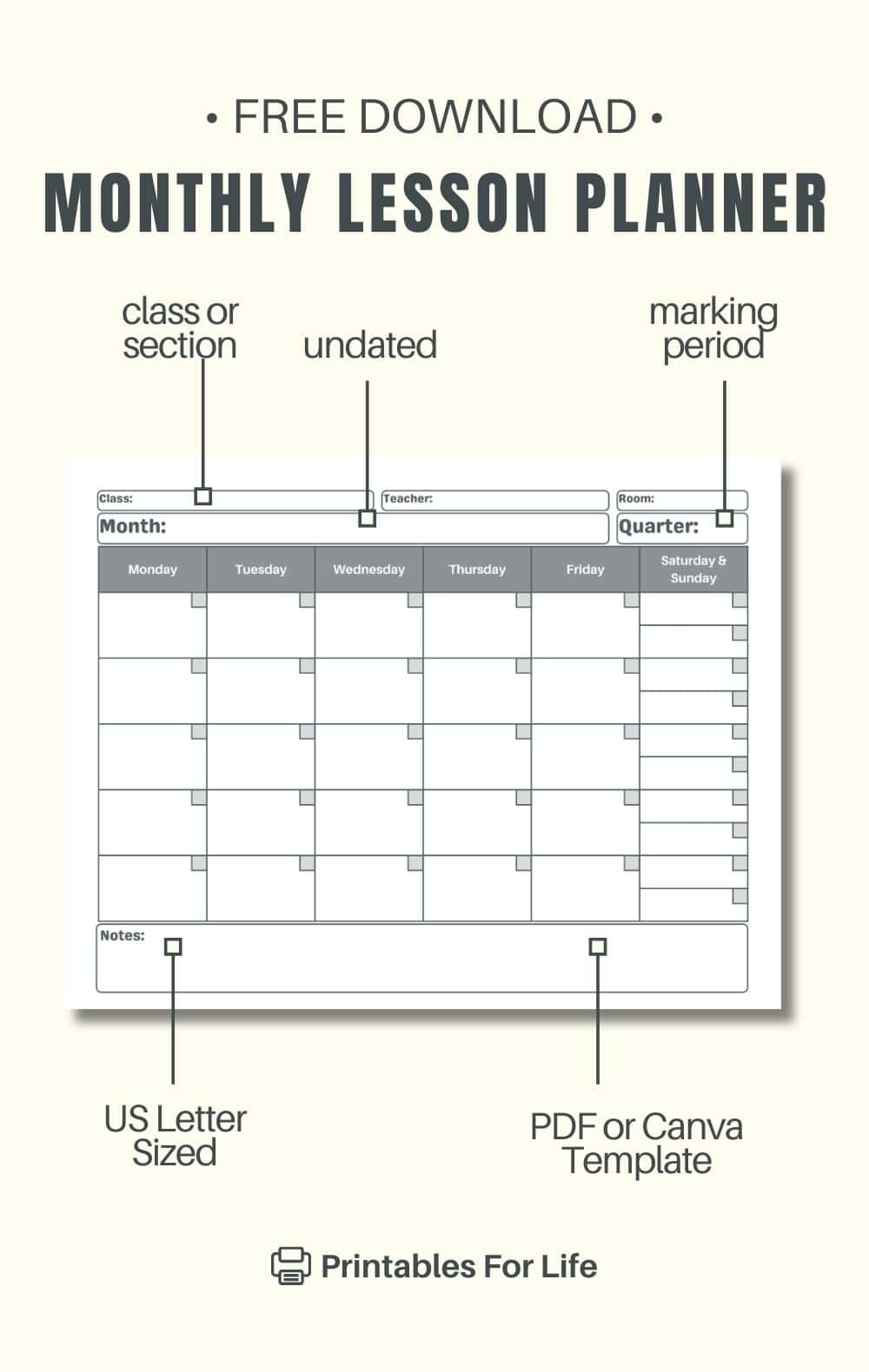 Don’t let lesson planning overwhelm you. Take advantage of our Free Printable Monthly Lesson Plan Template and streamline your teaching process. Download it today and see the difference it can make in your classroom!