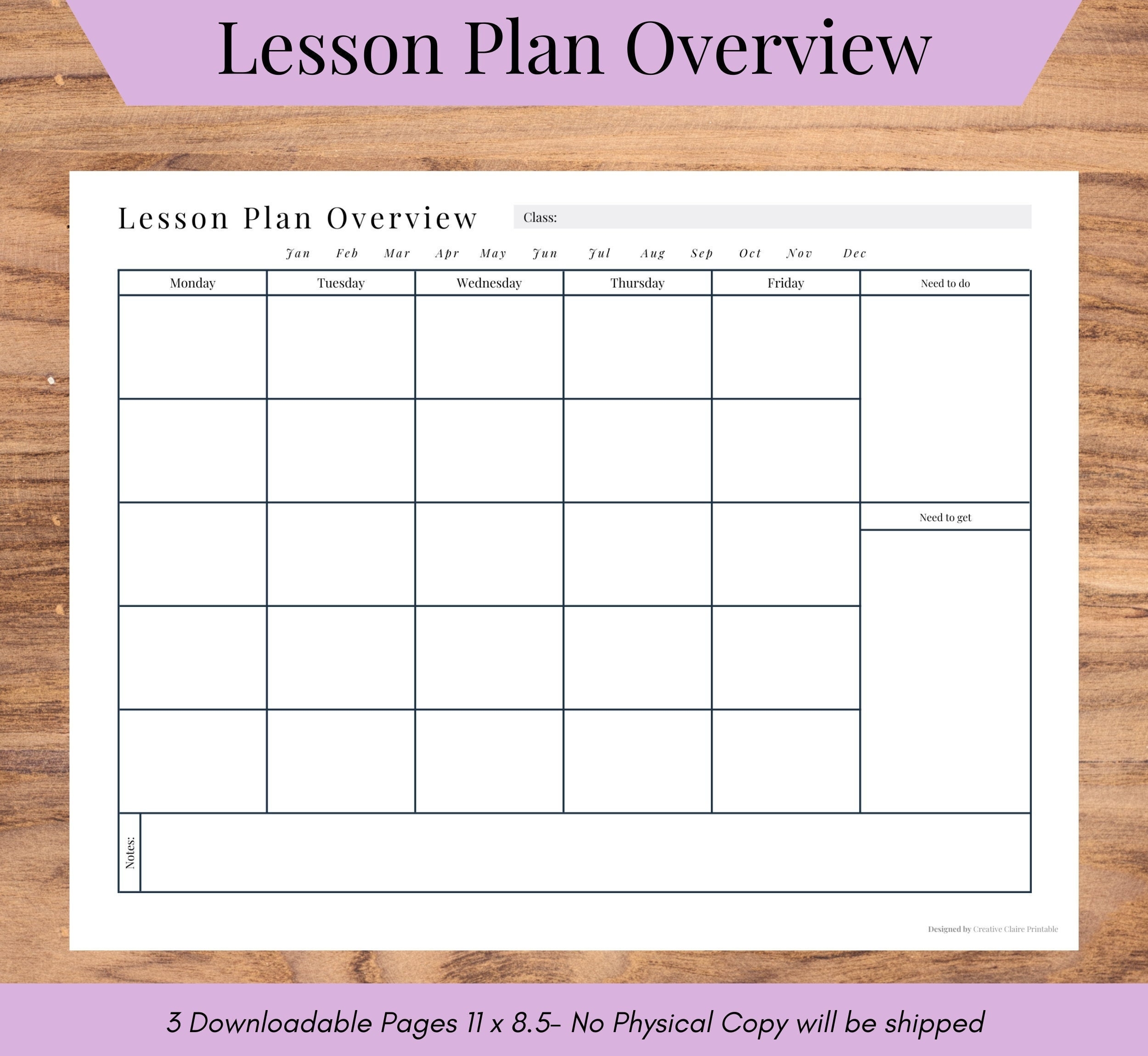 Lesson Plan Overview Visual Monthly Planner Lesson Planner Template Printable Lesson Plan Book Printable Lesson Plan Digital Lesson Etsy