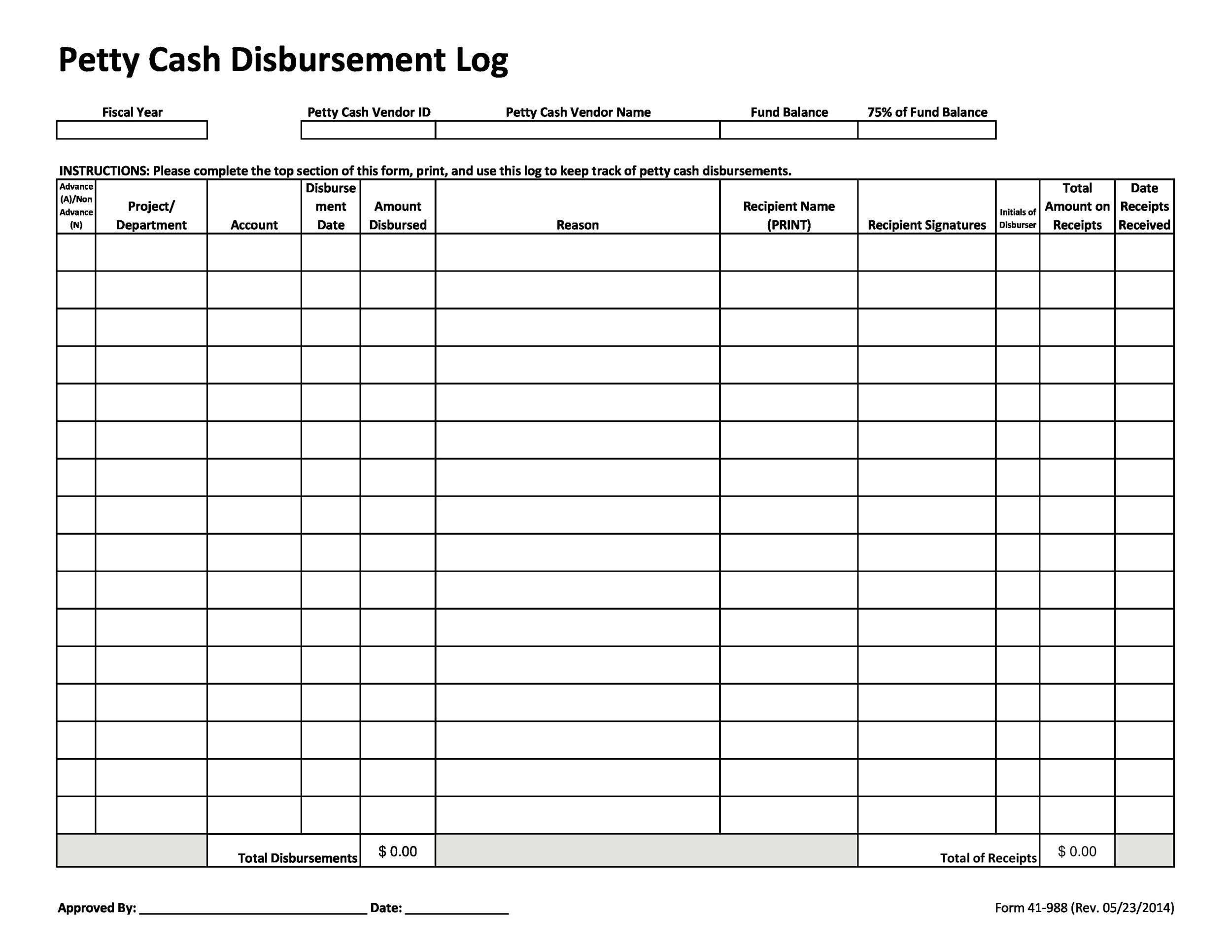Free Printable Petty Cash Template