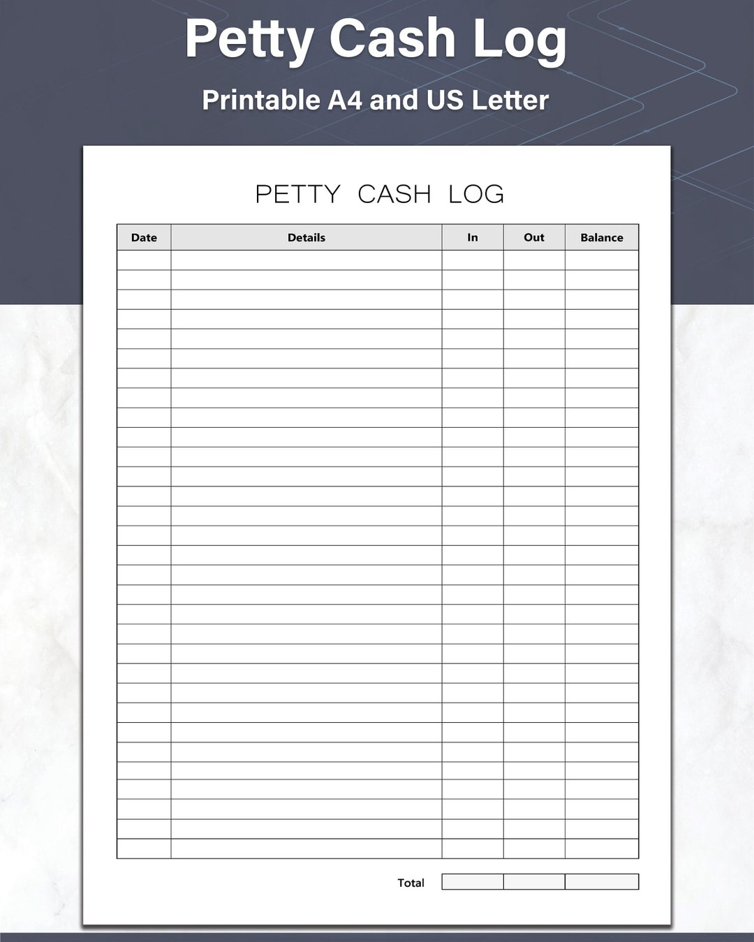 Petty Cash Log Printable And Fillable PDF Template Etsy