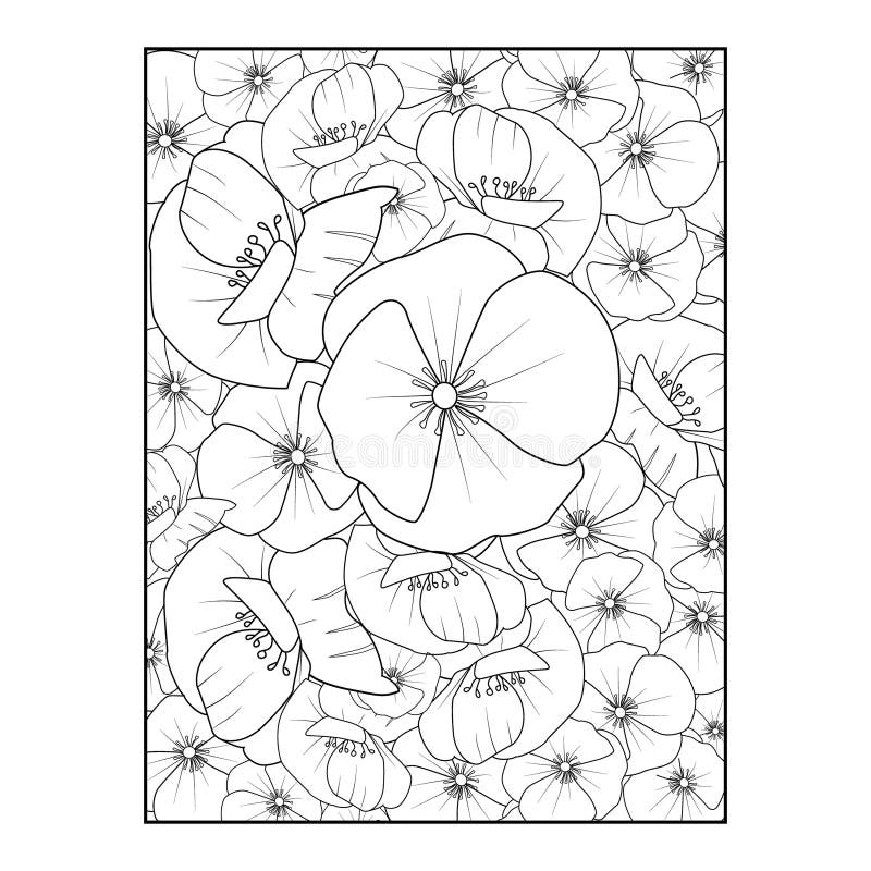 Outline Poppy Flower Pattern Poppy Flower Vector Pattern And Poppy Flower Coloring Pages For Adults Stock Vector Illustration Of Document Template 278329163