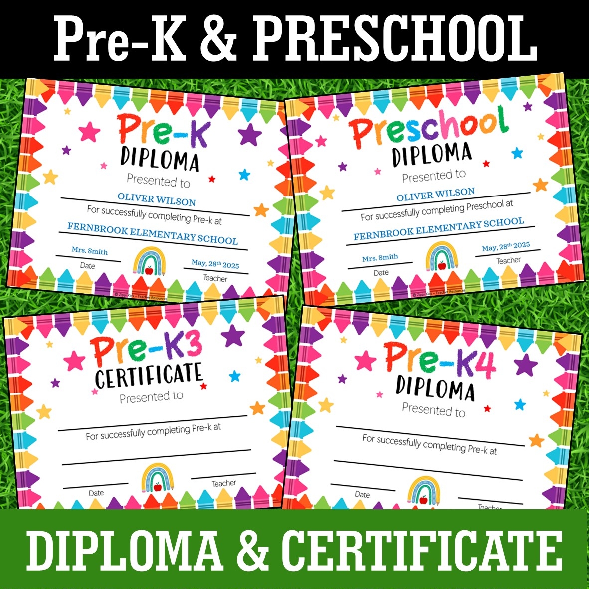 Pre K Preschool Diploma Certificate End Of Year Pre K Graduation Promotion Zippi Kids