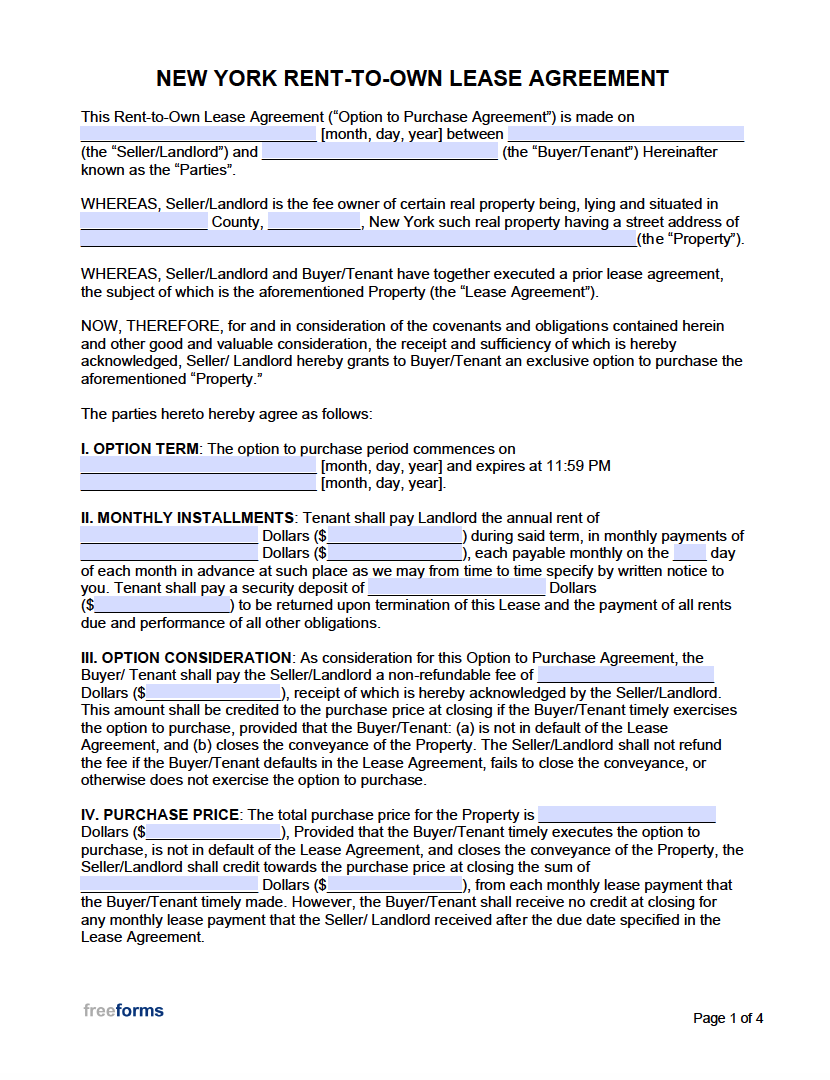 Free New York Rent to Own Lease Agreement Template PDF Word