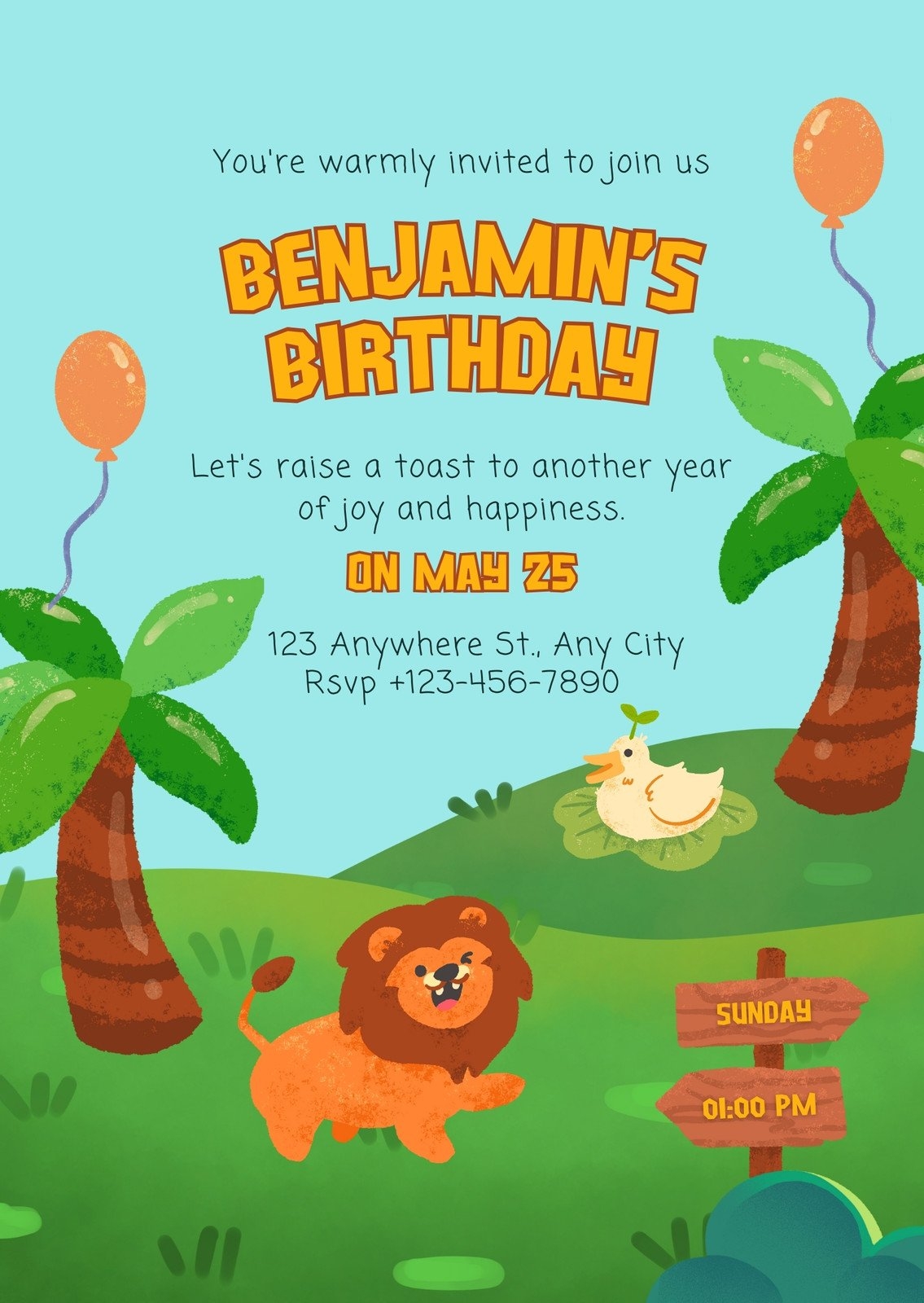 So why wait? Download our free printable safari theme invitation template today and start planning the wildest party of the year. With just a few clicks, you’ll have everything you need to make your event a roaring success!