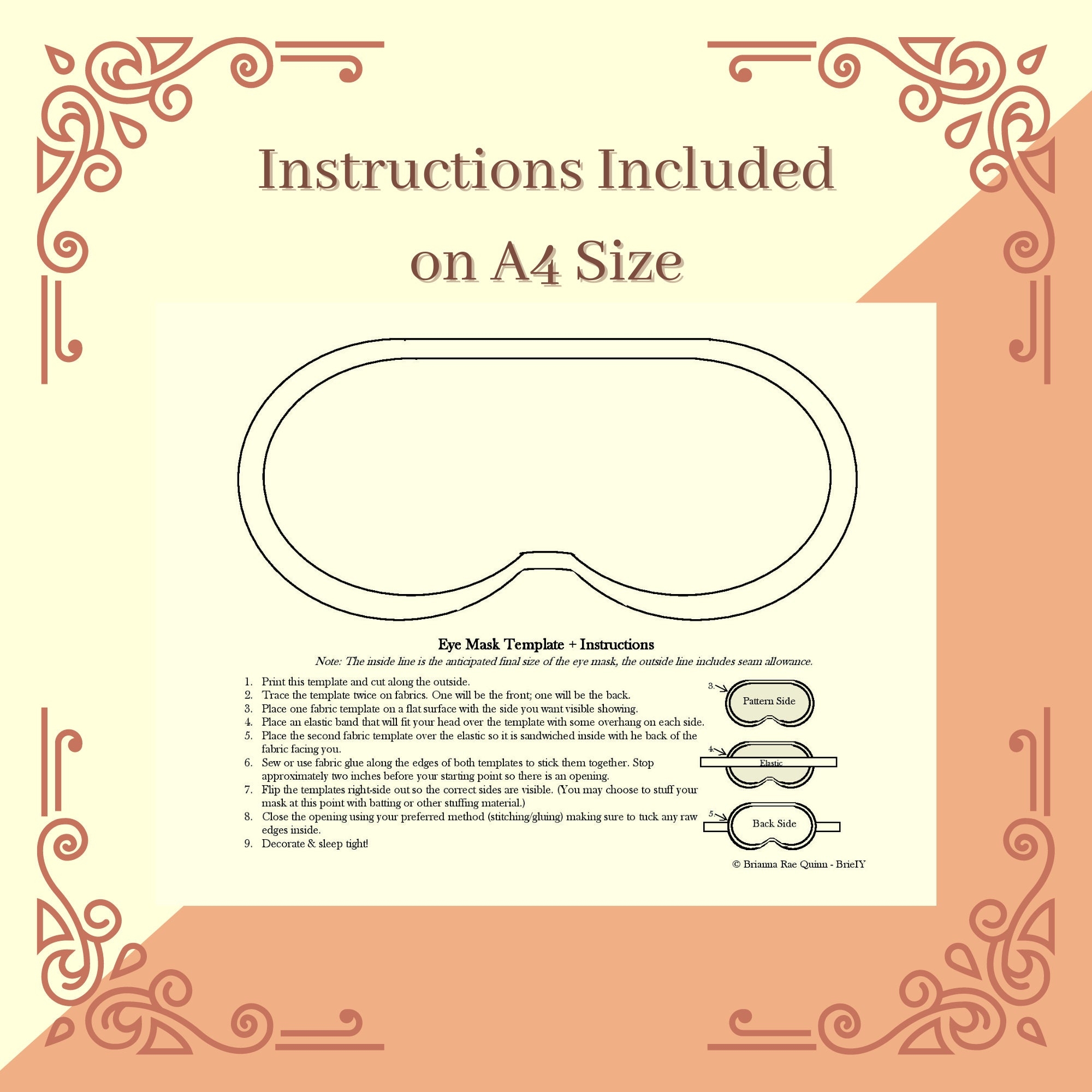 Printable Eye Mask Sleep Mask Template With Instructions Etsy
