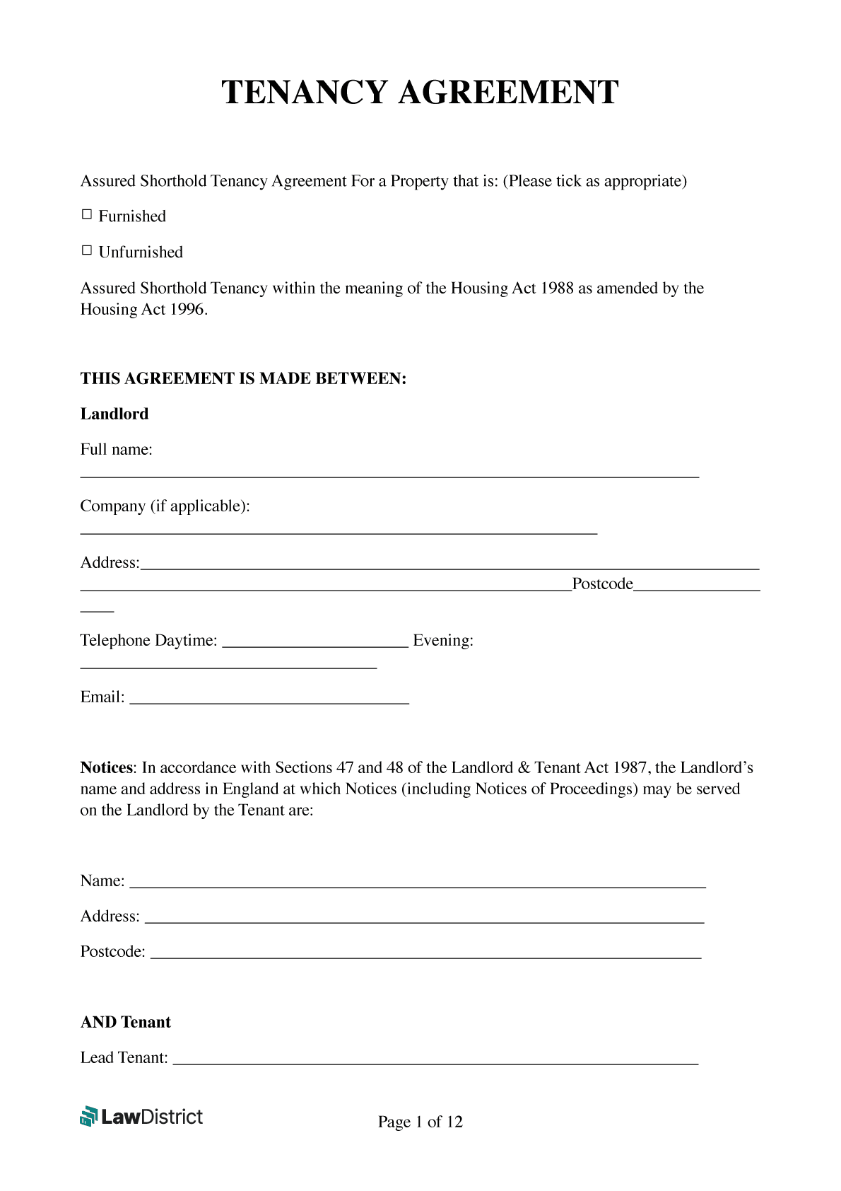 Free Tenancy Agreement Template UK Sample PDF LawDistrict