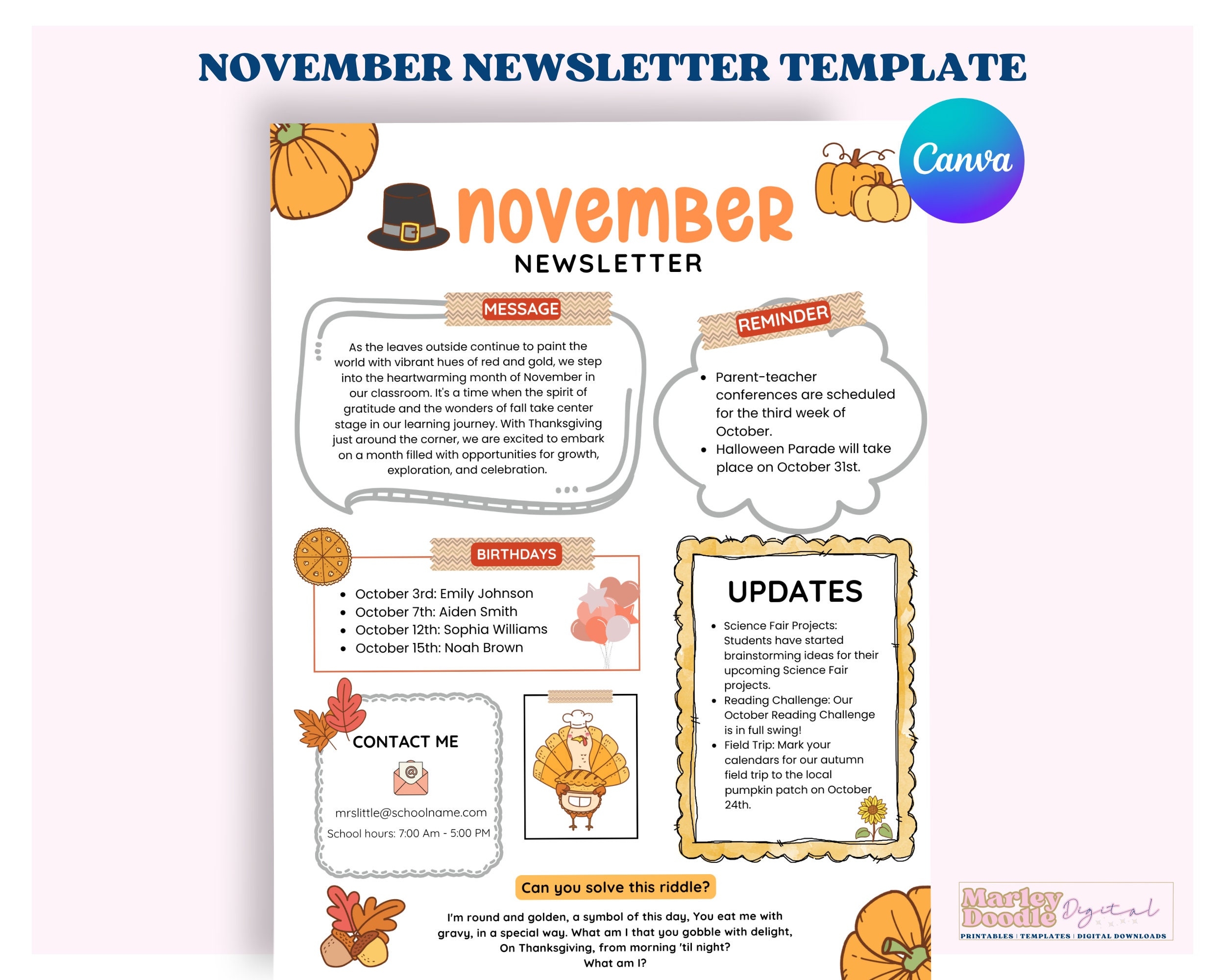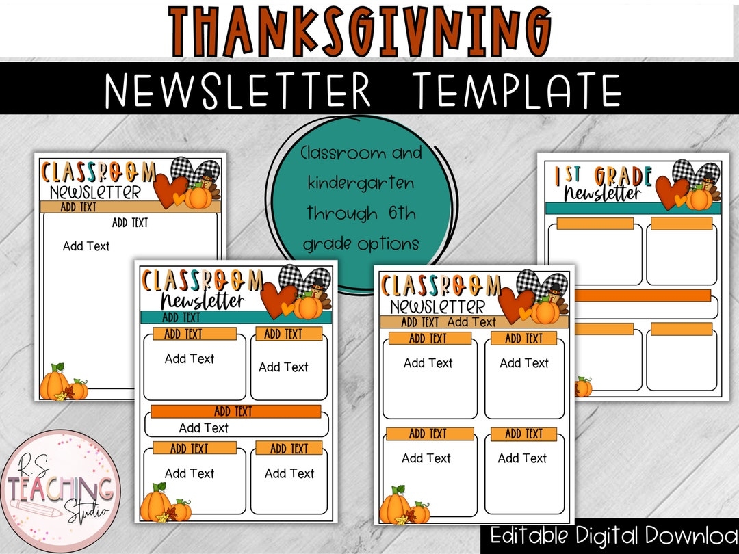 Thanksgiving Newsletter Templates November Classroom Newsletter Editable Classroom Newsletter Template Etsy