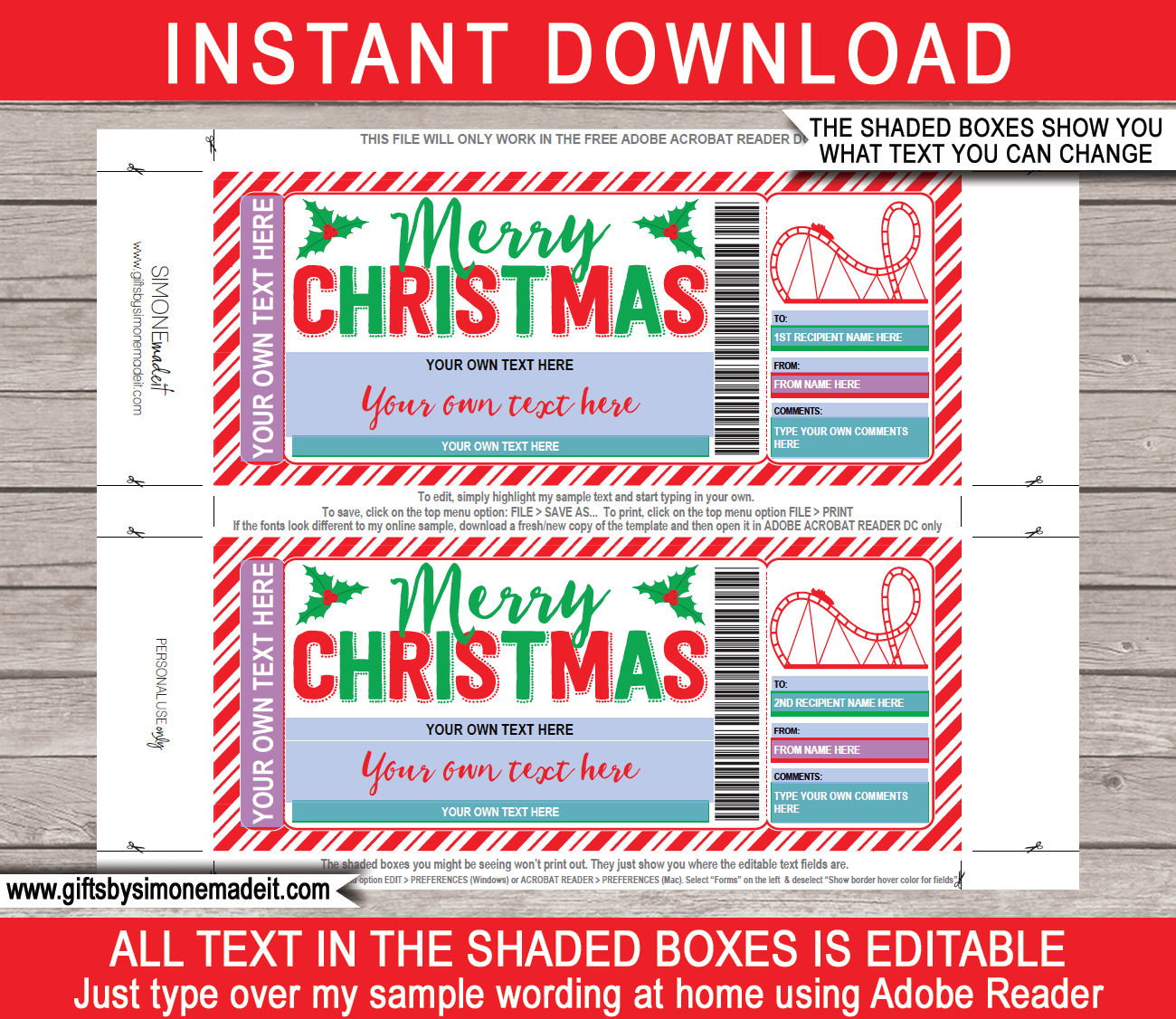Christmas Theme Park Ticket Template Printable Gift Voucher Certificate