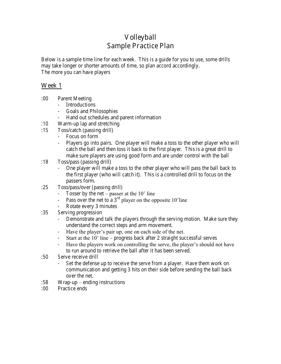 Sample Volleyball Practice Plan Download Printable PDF Templateroller