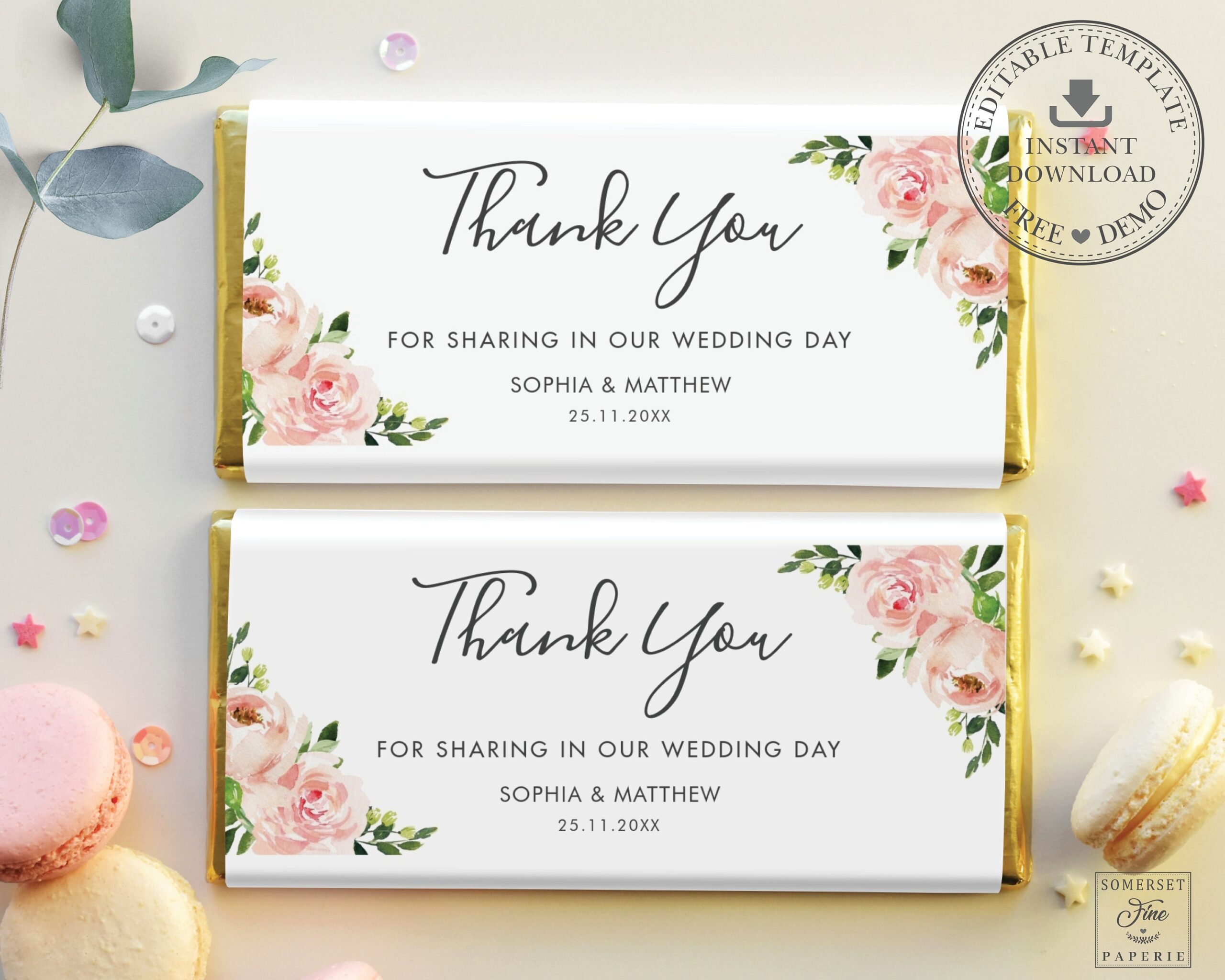 Wedding Chocolate Bar Label INSTANT DOWNLOAD Candy Bar Wrapper Hershey Aldi Editable Template Printable Baby Shower Birthday BL1 Etsy