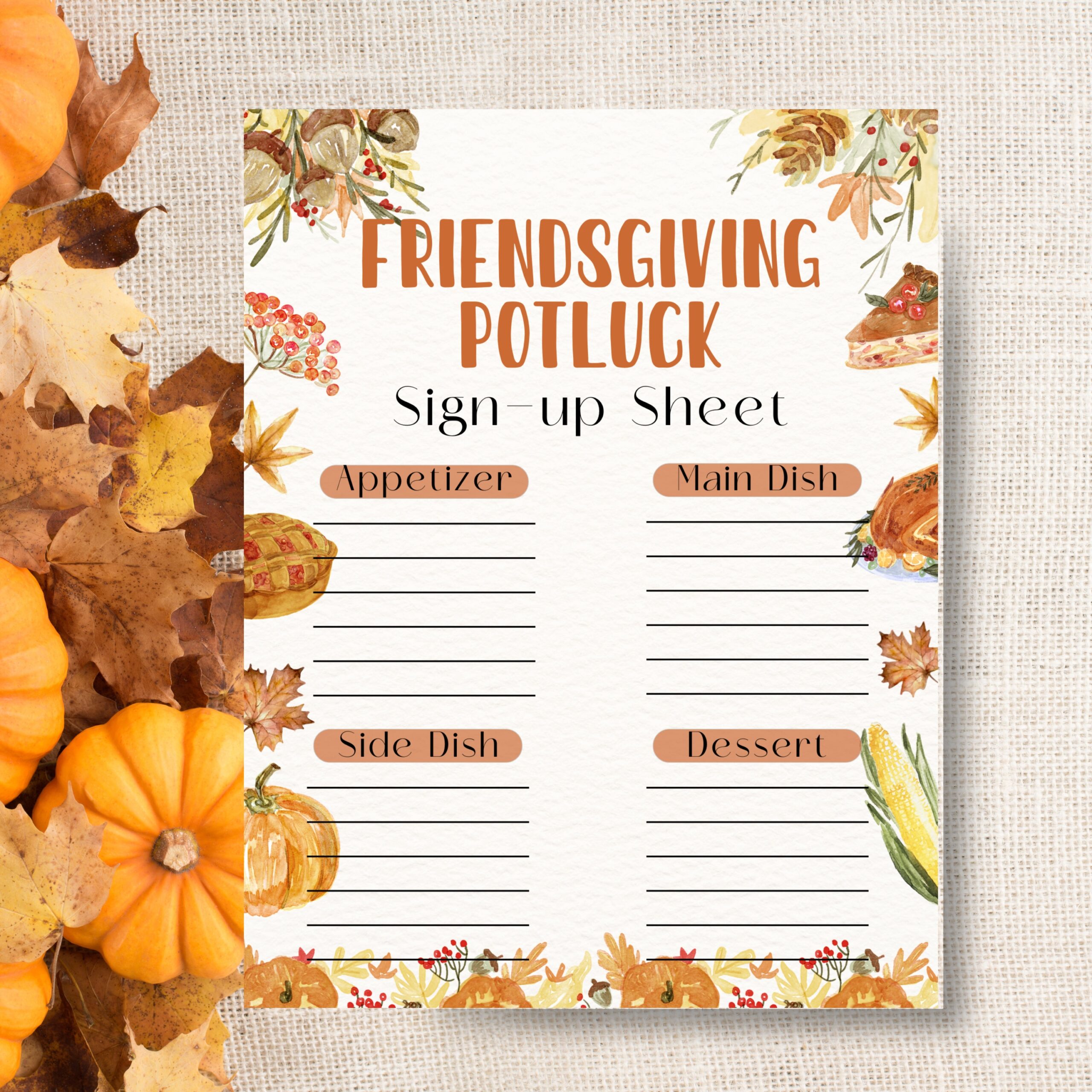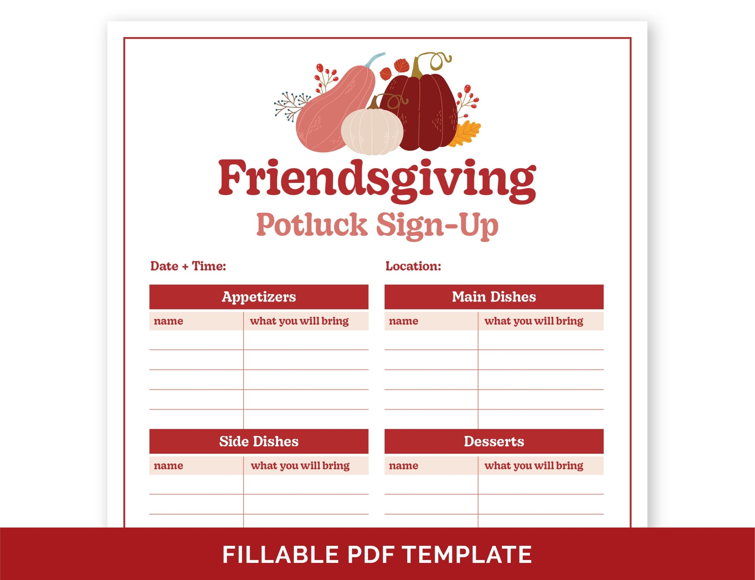 Friendsgiving Potluck Sign up Sheet Food Sign up Fillable PDF