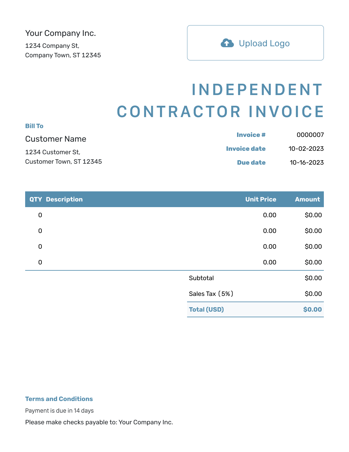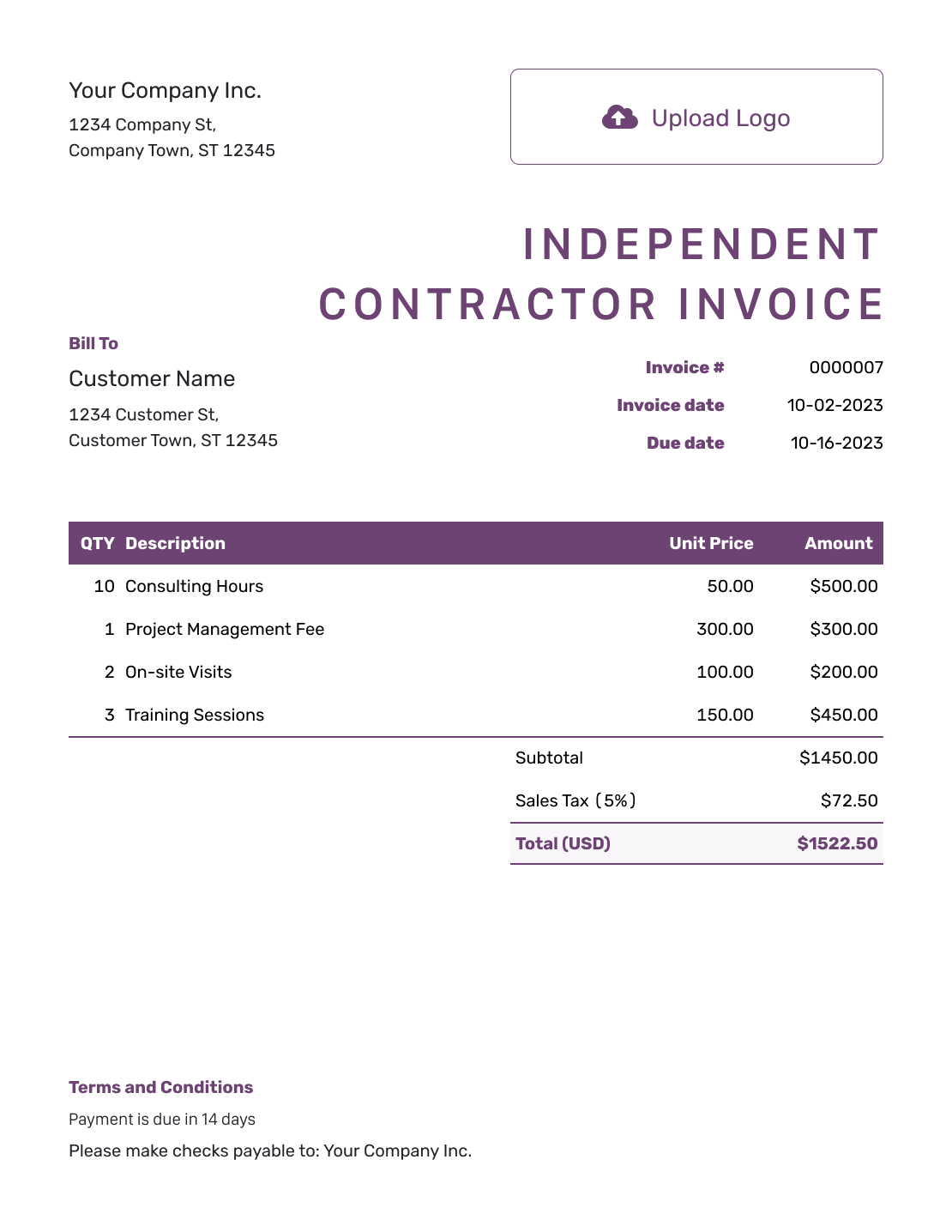 Free Freelance Independent Contractor Invoice Template PDF Word EForms