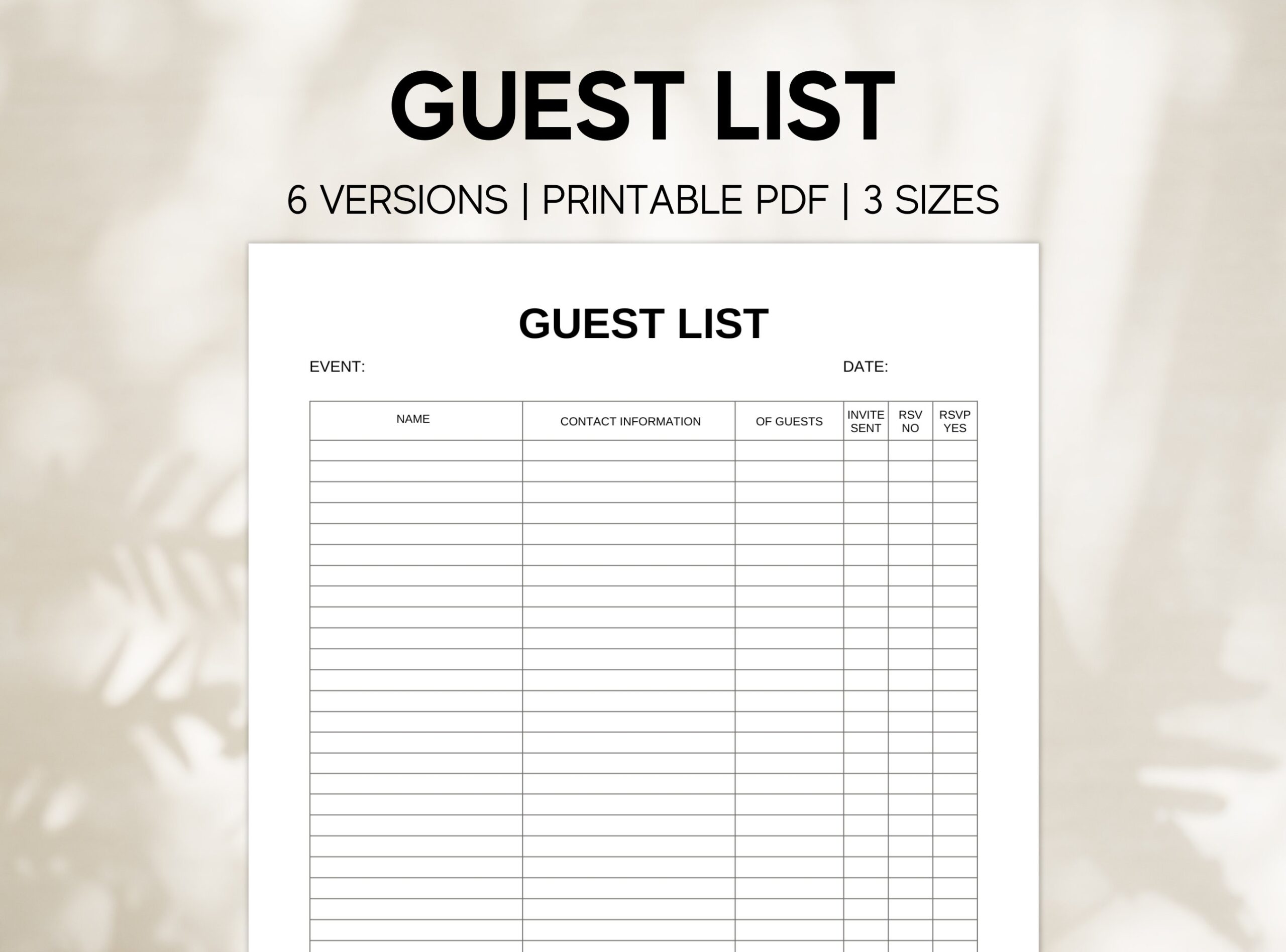 Printable Guest List