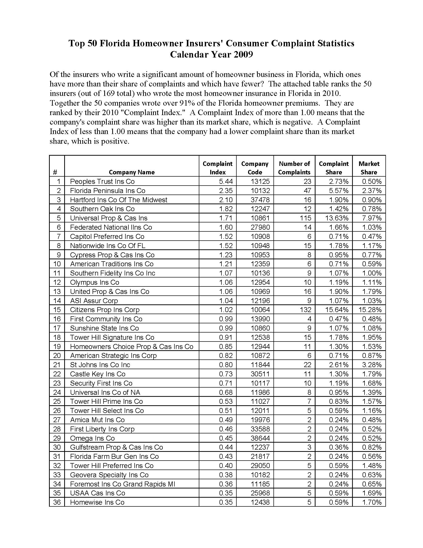 Insurance Company Complaint Rankings For 2010 Have Been Released