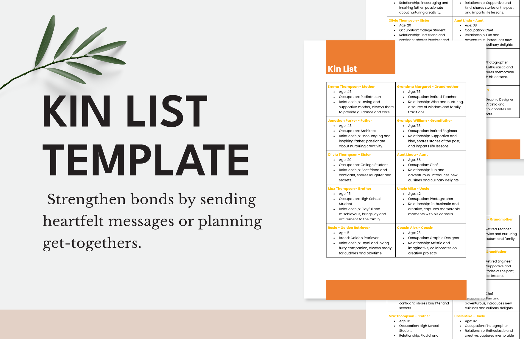 So why stress about remembering all those important dates when you can easily keep track of them with a Kin List Template? Say goodbye to missed birthdays and anniversaries, and hello to a more organized and connected family. Try it out today and see the difference it can make!