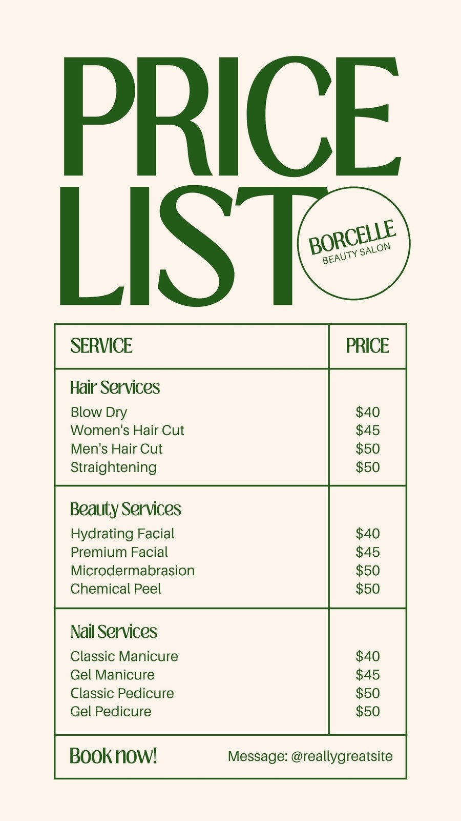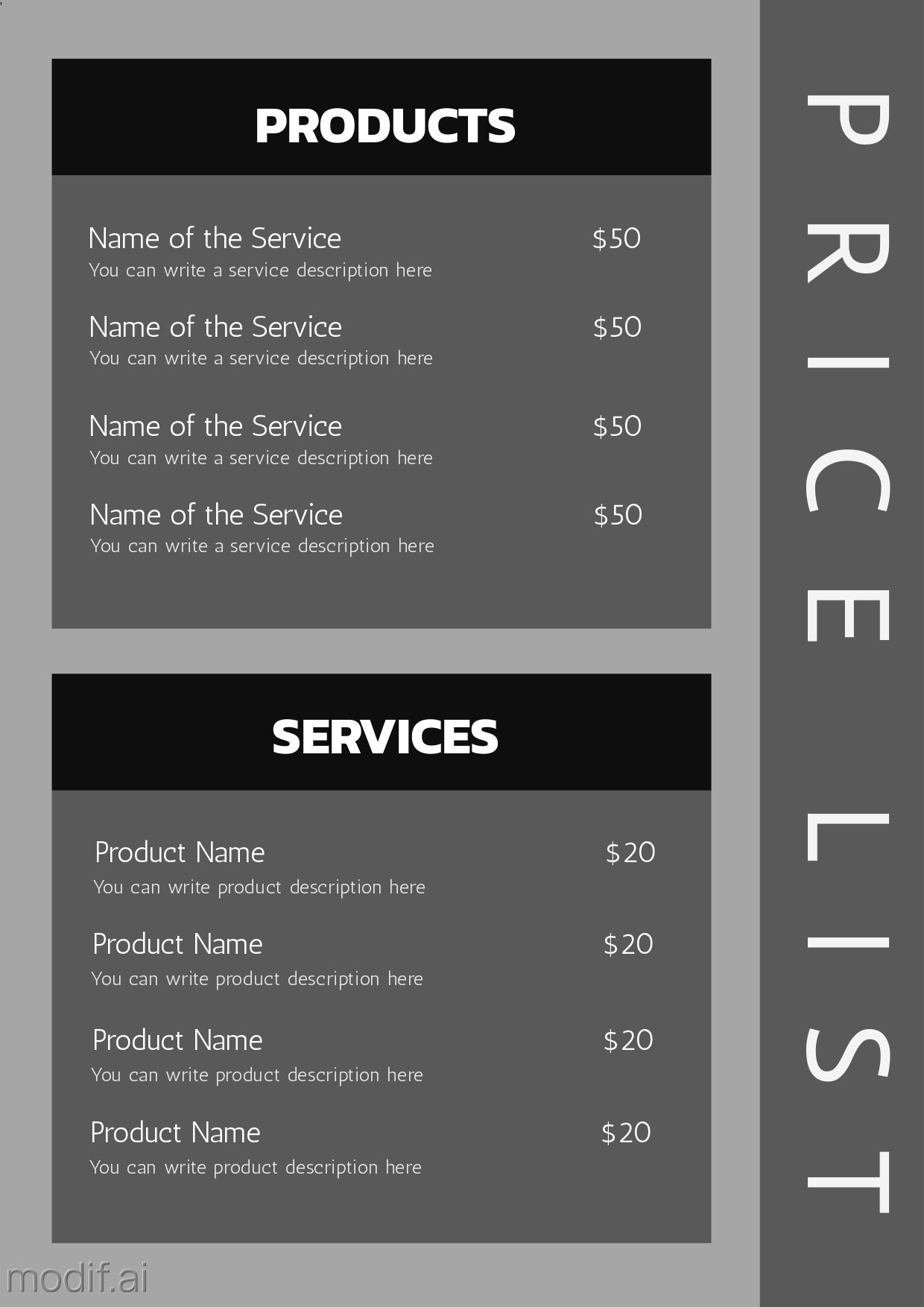 Price List Template With Dark Green Background Mediamodifier