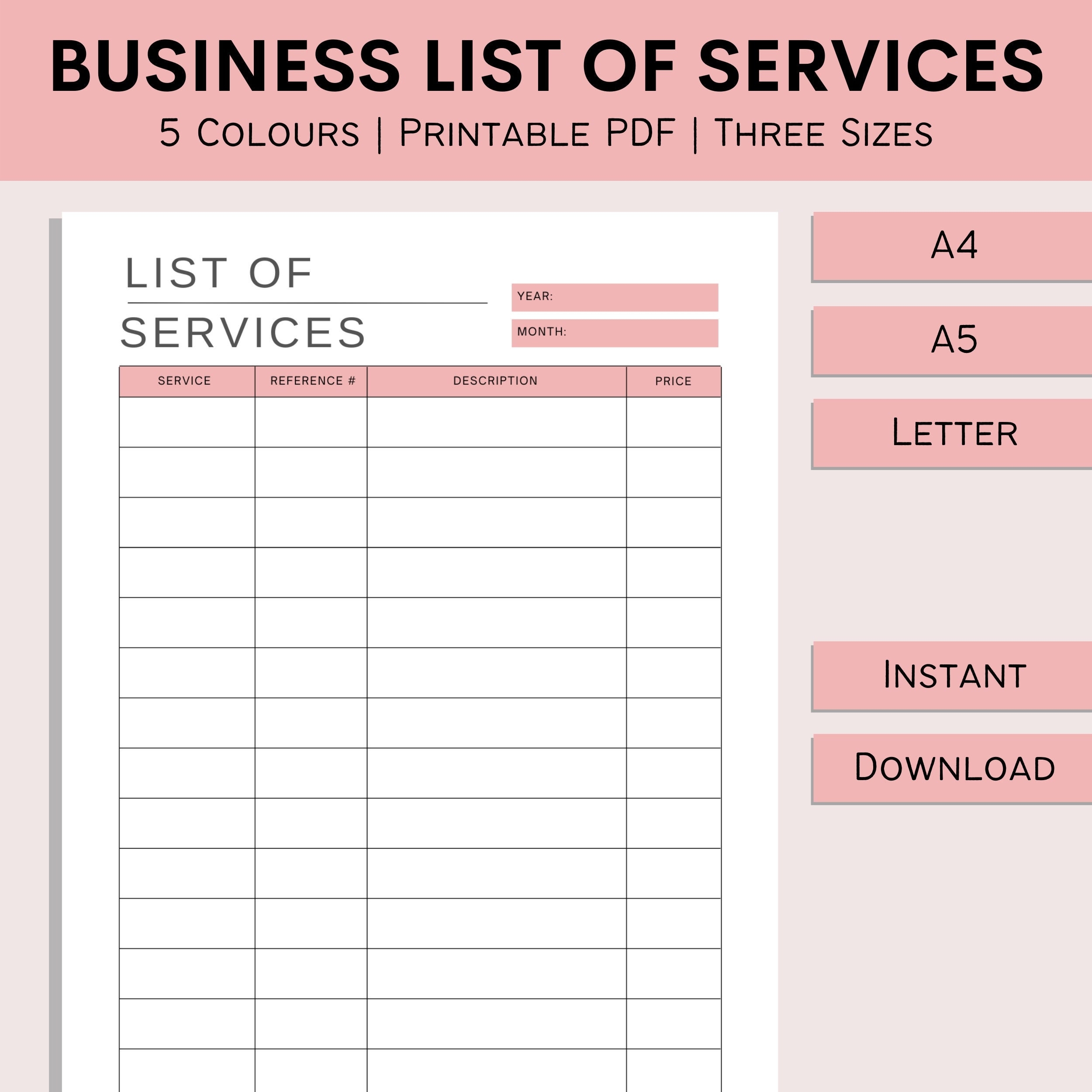 List Of Services Template