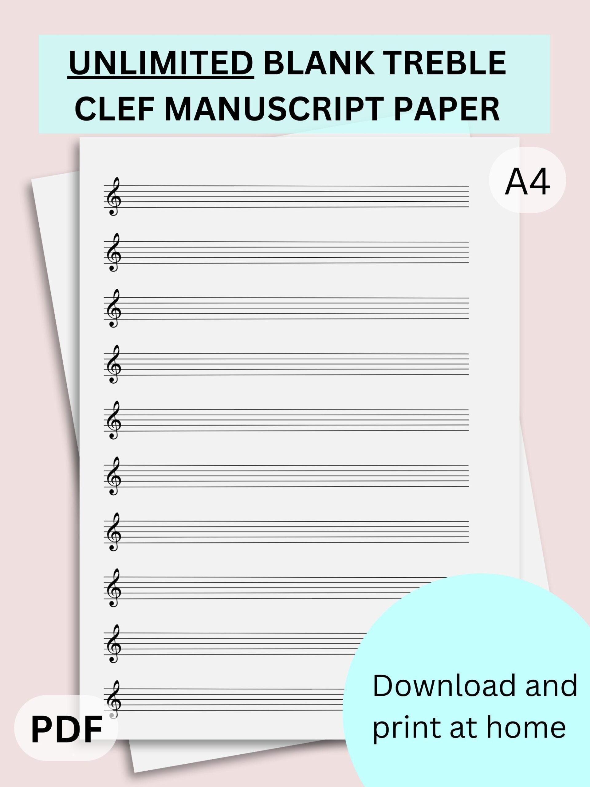 BLANK MANUSCRIPT PAPER Treble Clef Unlimited Print At Home Staff Paper Stave Paper Blank Sheet Music Write Your Own Music Paper Etsy UK