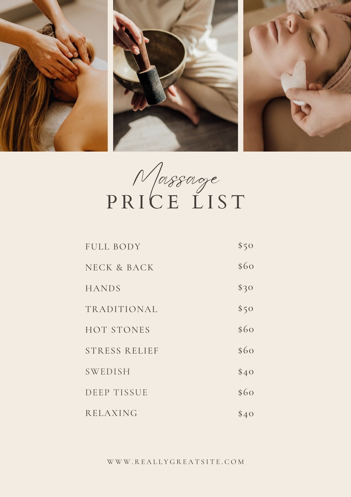 Massage Price List Template