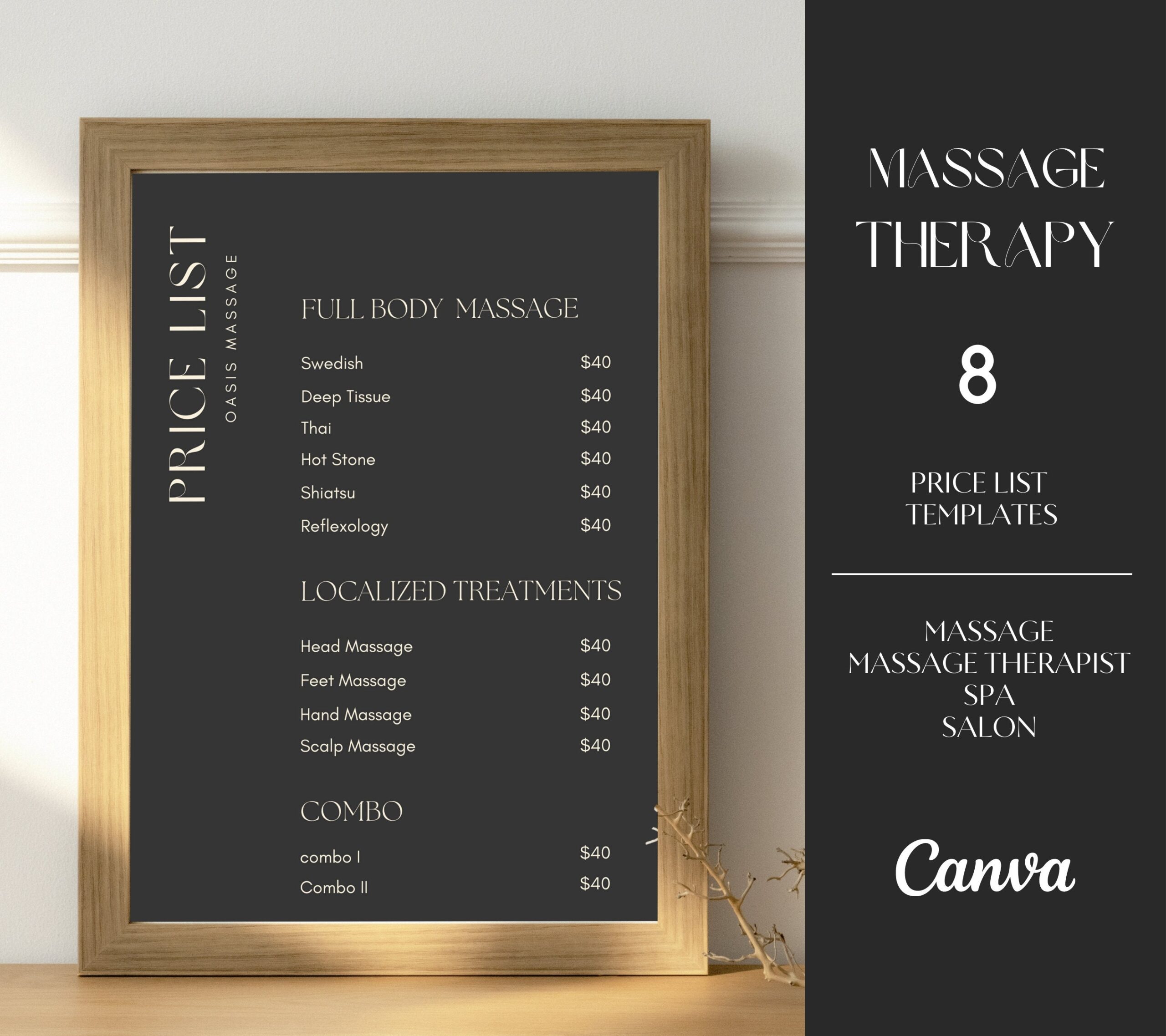 Massage Price List Template Editable Price List Canva Template