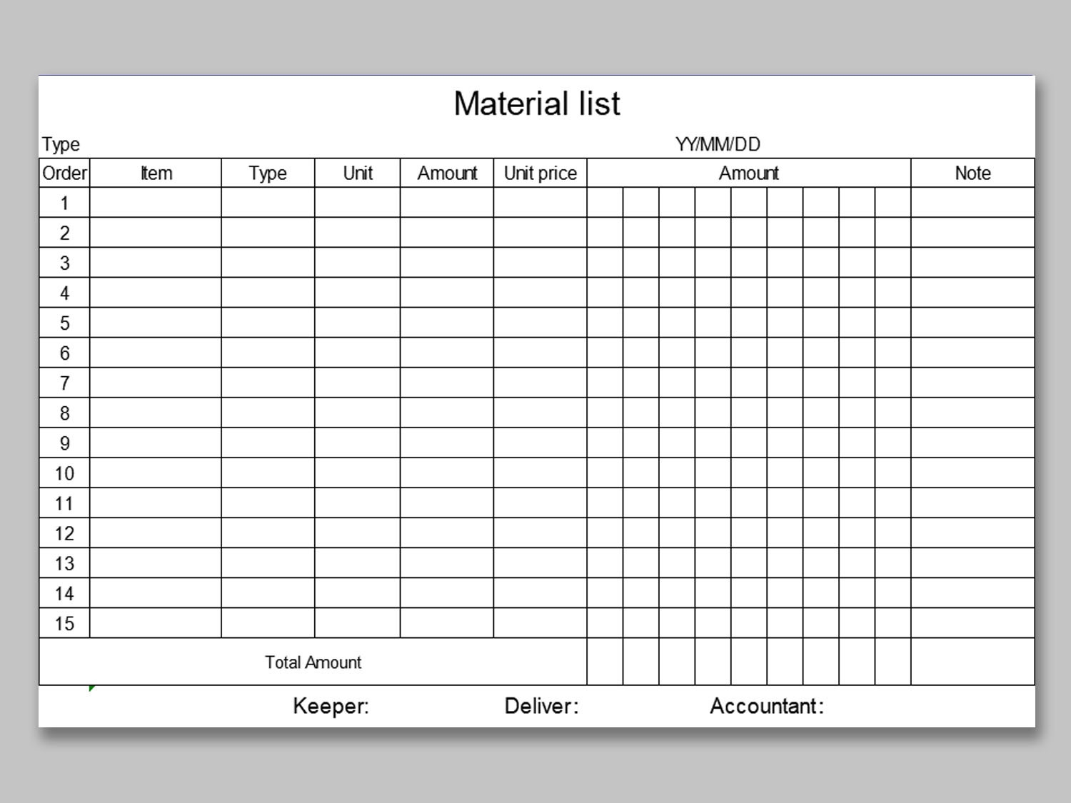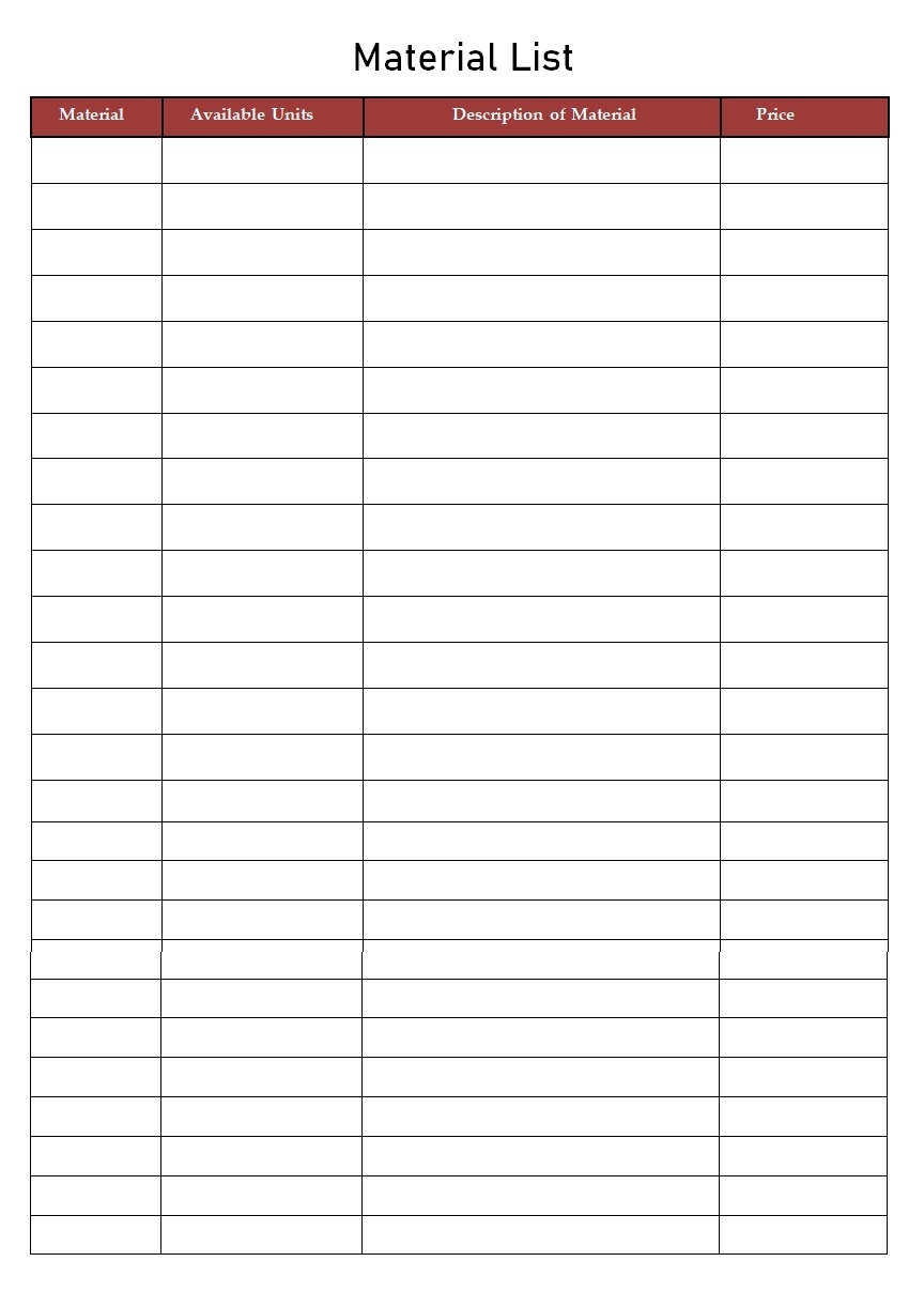 So, next time you embark on a project, don’t forget to use a material list template. It’s a simple yet powerful tool that can make a world of difference in your planning and execution. Stay organized, stay on budget, and watch your project come together seamlessly.