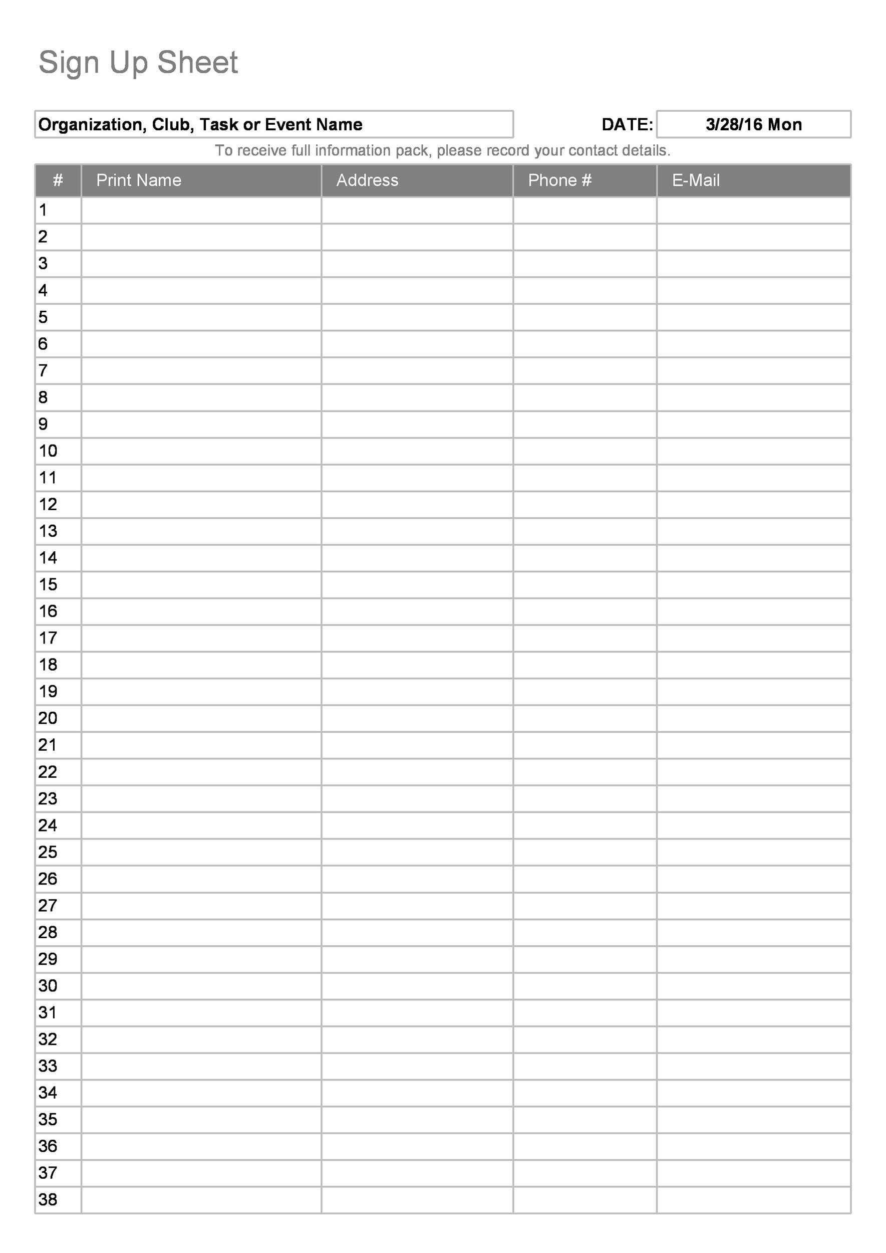 30 Best Email Sign Up Sheet Templates Word Excel Worksheets