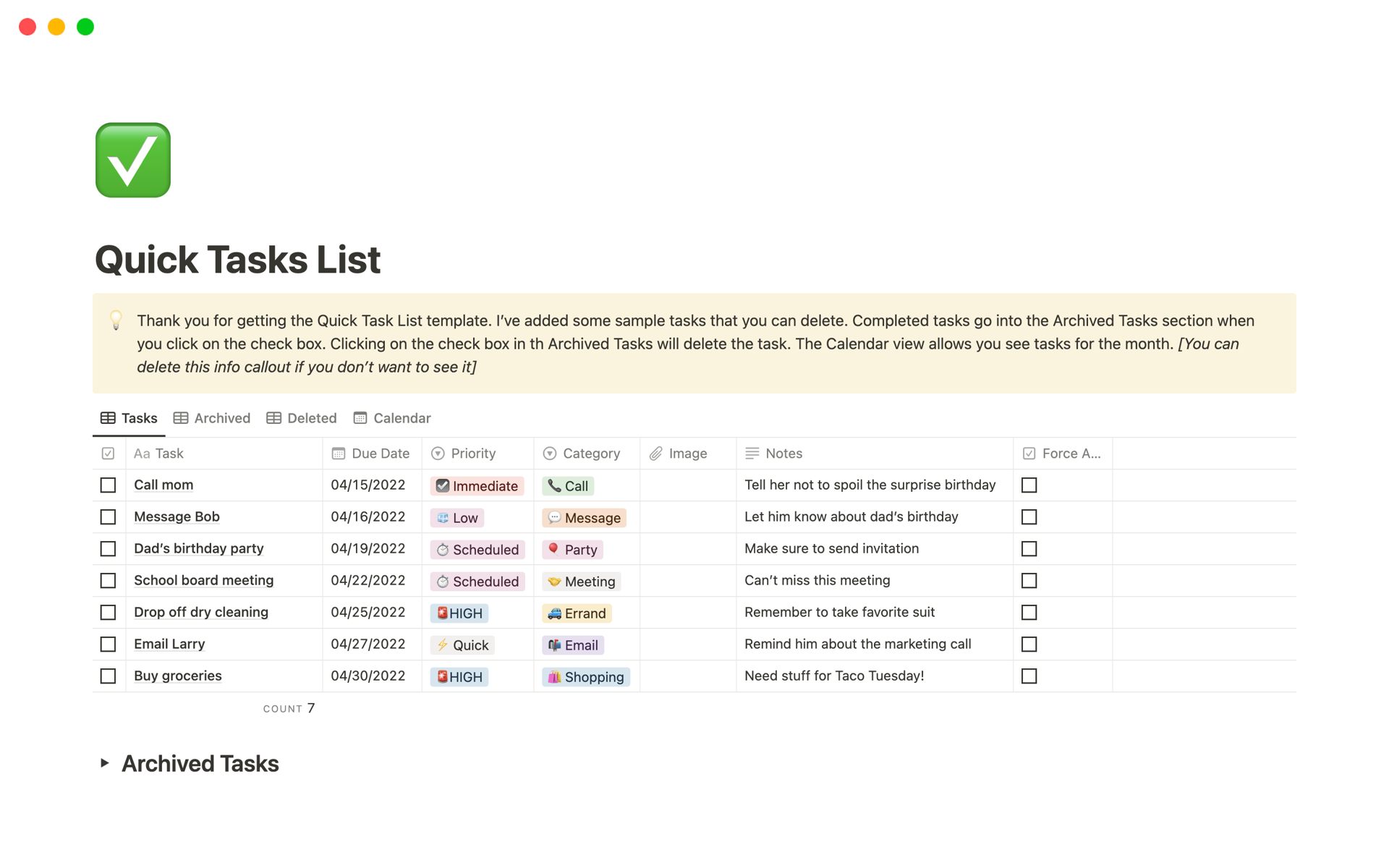 Notion Task List Template
