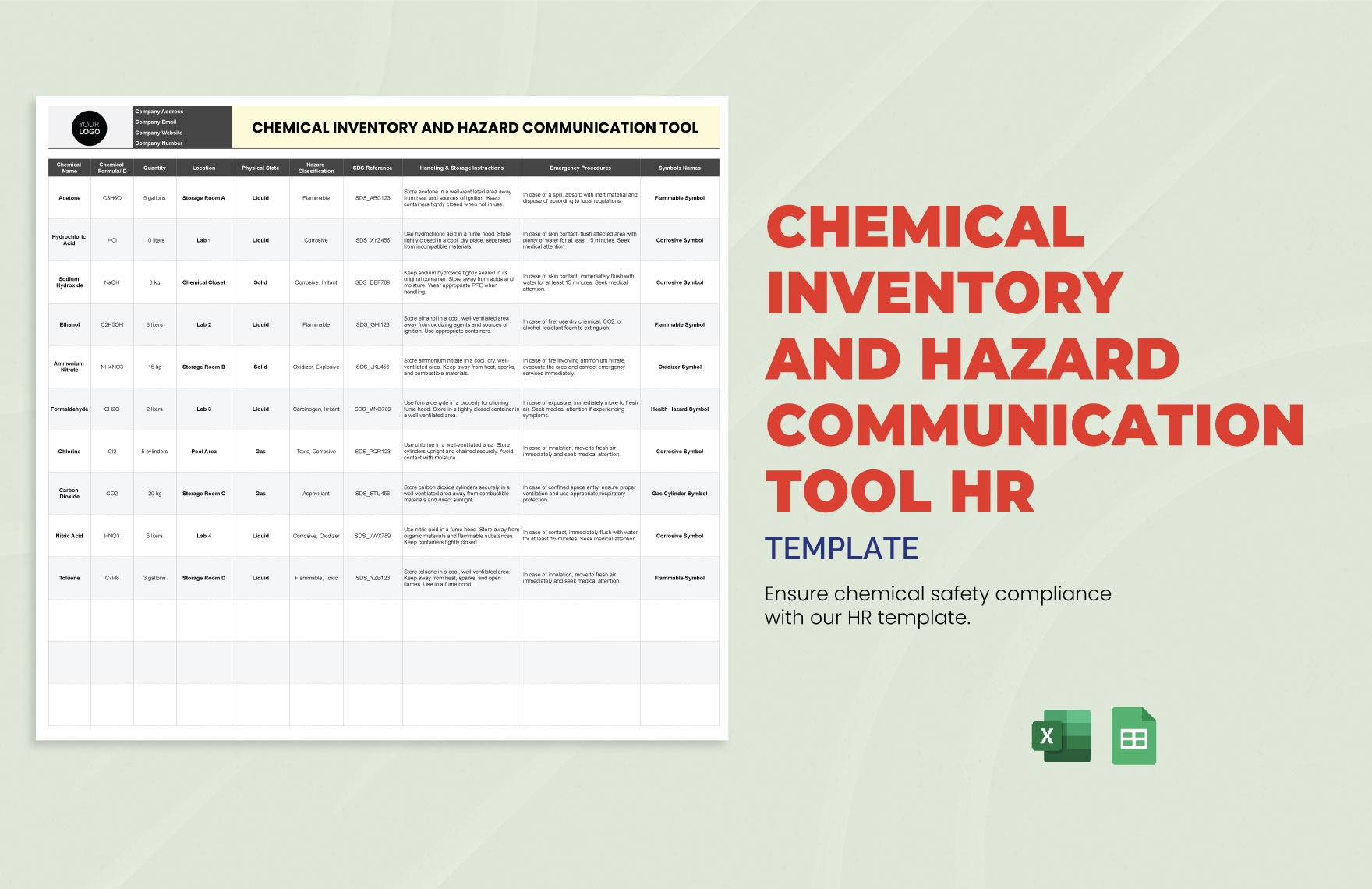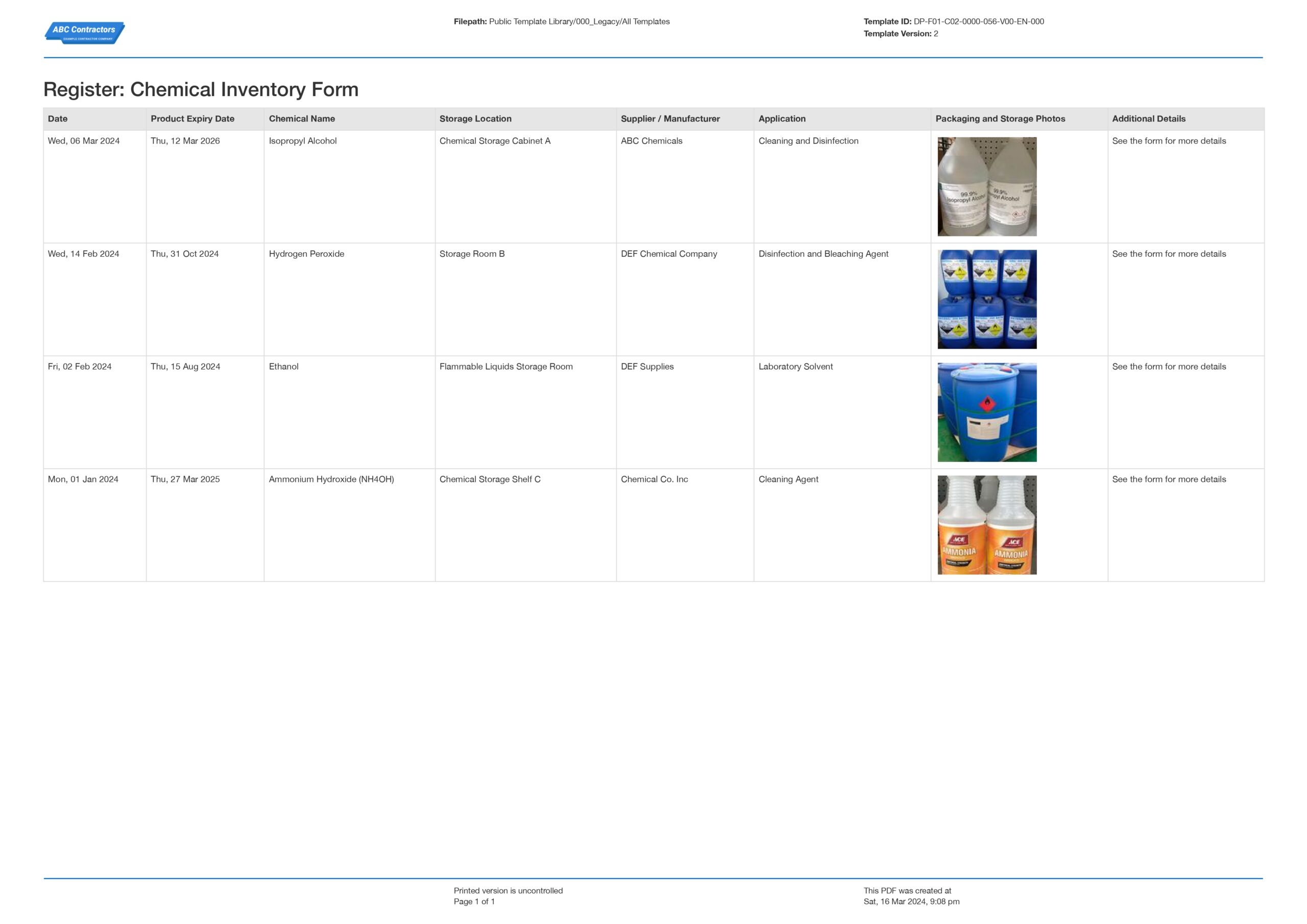 By using a template, you can save time and effort by organizing your inventory in a structured and standardized format. This makes it easier to update and maintain your records, ensuring that you always have an accurate snapshot of the chemicals on-site.