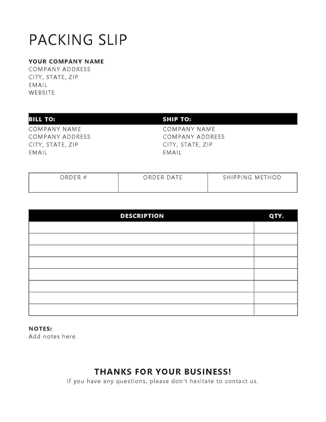 Packing Slip Printable Packing Slip Microsoft Word Packing Slip Packing Slip For Word Editable Packing Slip Etsy