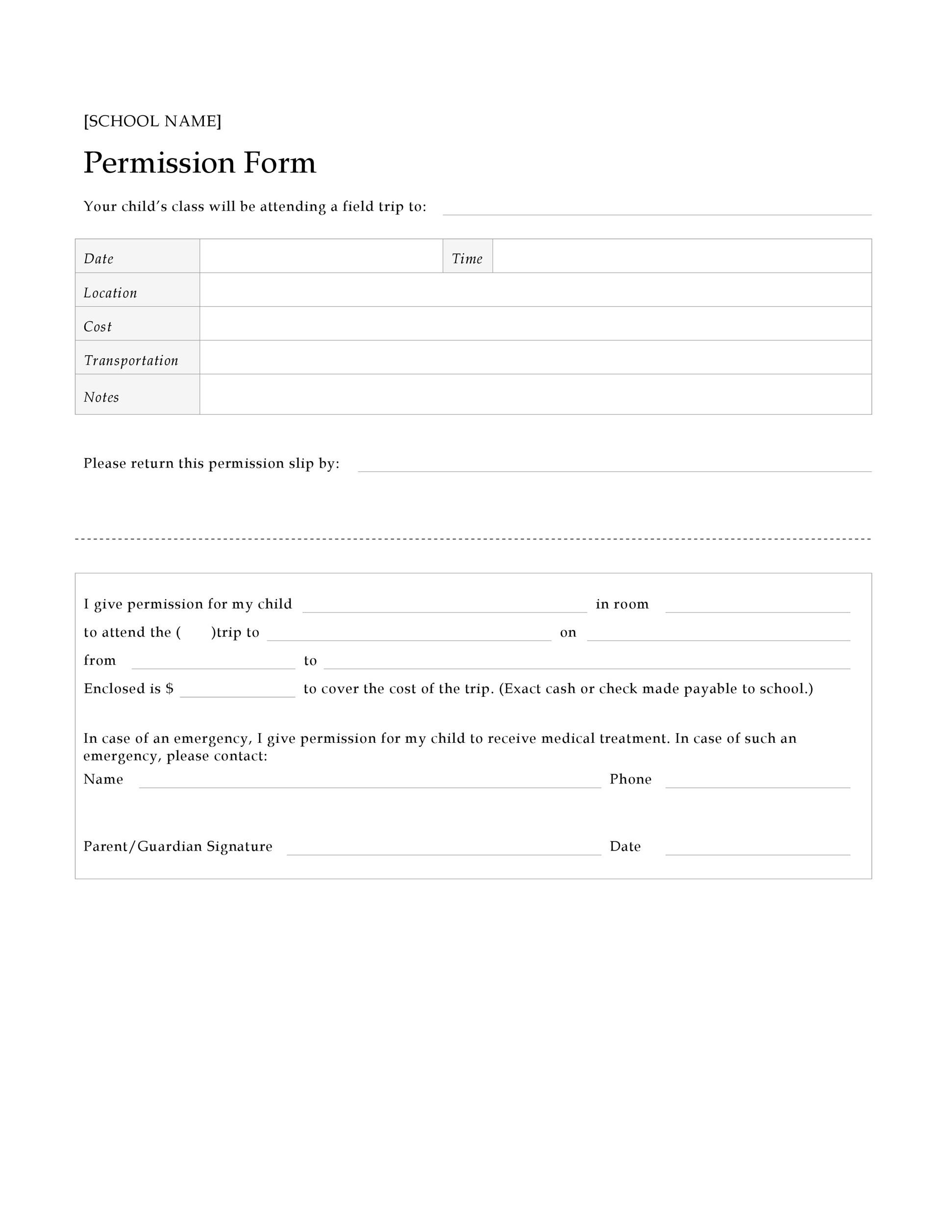 Free Printable Customizable Permission Slip Letter Templates Canva