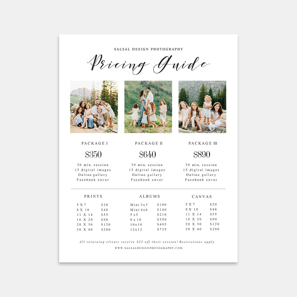 Elisa Photography Price Guide Template
