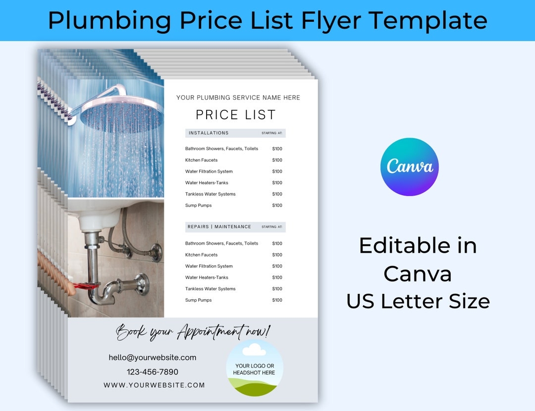 Plumbing Price List Plumbing Company Templates Price List For Plumbers Flyer For Plumbing Company Price List Flyer For Plumbing Company Etsy