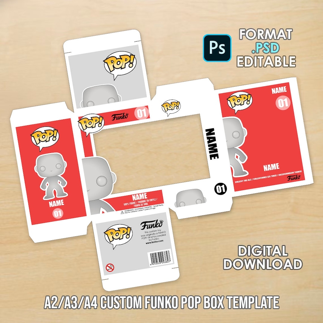 Custom Funko POP Box Template Digital Funko POP Box Mockup Editable Photoshop Files A4 A3 A2 Etsy