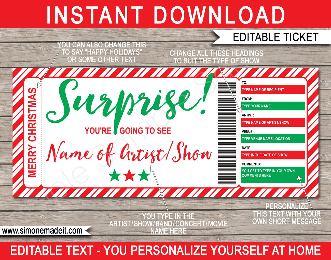 Printable Concert Ticket Christmas Gift Idea Editable Event Ticket Xmas Gift Print Yourself Ticket Present Surprise Concert Ticket Gift Etsy